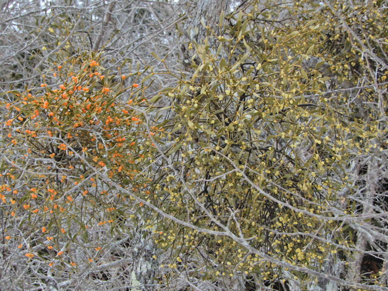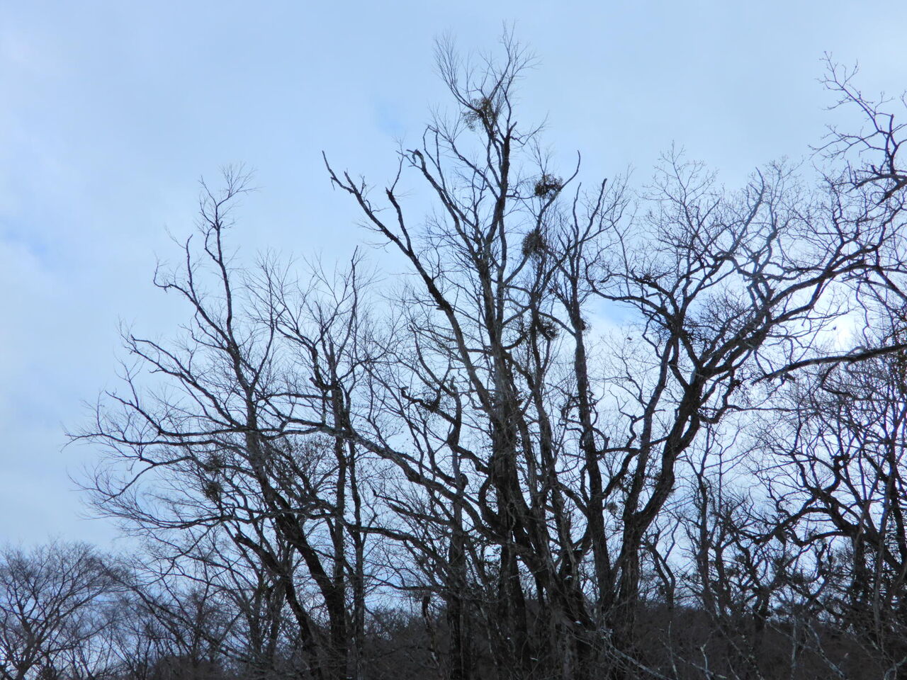 今日は一日くもり予報。 今週前半はくもりで後半にちらちら雪マークが。 前回のような大雪にならなければいいなと思っています。 さて、今日は、大沼、ヨシ沼で この季節最も目立っている植物を。 ヤドリギです。 木々の葉がすっかり落ちると、 木の幹や枝についたヤドリギが姿を現します。 鳥が粘性のある実を食べて出す糞により、 木々の枝などに付いて着生する寄生植物ですが、 何とも木々と調和している姿に、いつも感心します。 主に淡黄色の実をつけますが、 大沼には朱色の実のアカミヤドリギもあり、 所々一緒になっています。 キレンジャク、ヒレンジャクという鳥が、 このヤドリギを食べるようです。 まだ実が沢山ついていますので、 これからやってくるかもですね。 ![]() ![]() ![]() ![]() ![]() ![]() ![]() 2026年1月18日 08:55