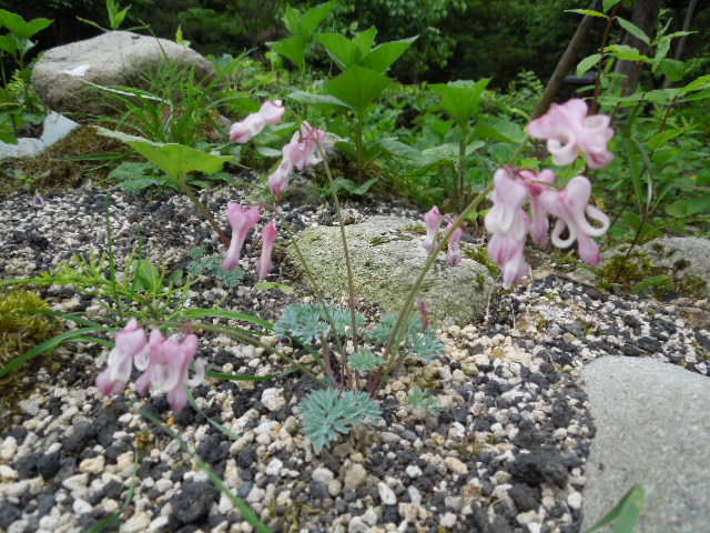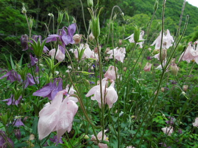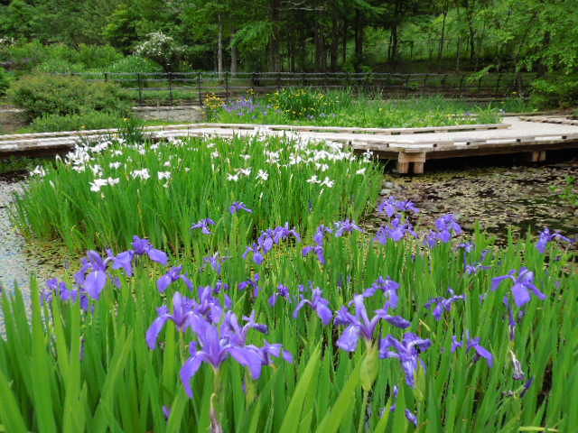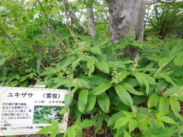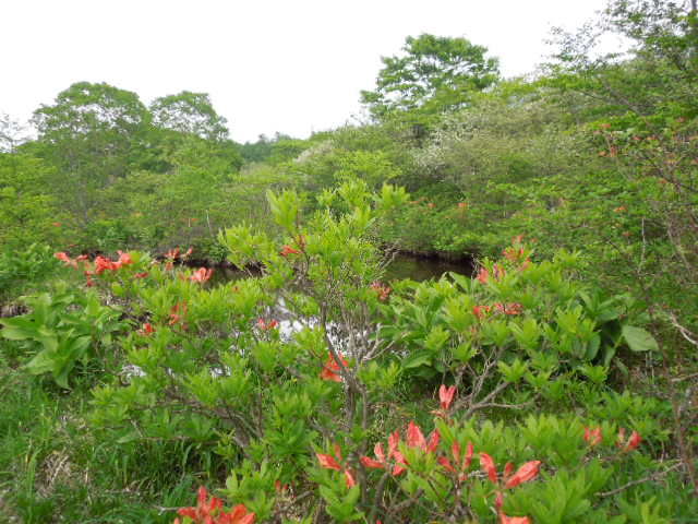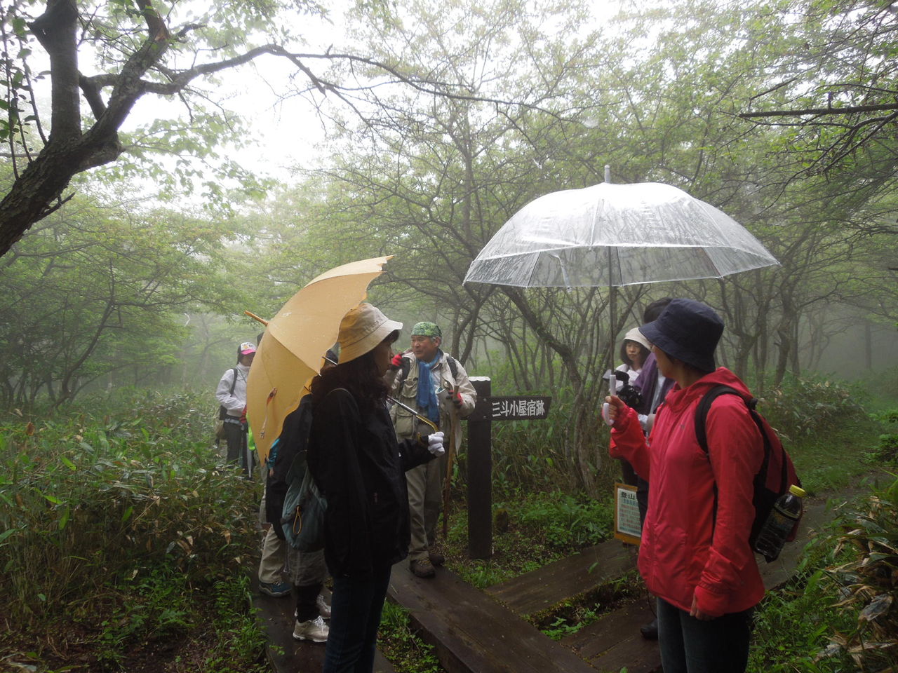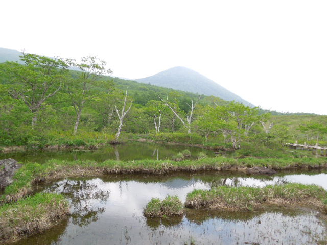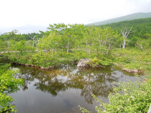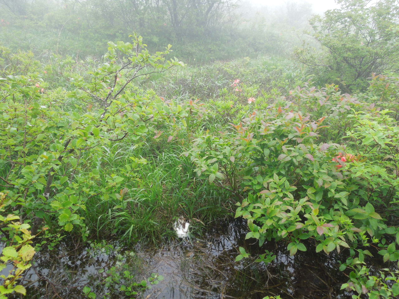 気持ちのいい青空が広がっています。 この天気が昨日だったら良かったのになあ・・・ 昨日は、お伝えしたように、 塩原温泉と板室温泉の女将さんたちで 沼ッ原湿原に行ってきました。 天気は良くありませんでした。 霧に包まれて、20メートル先は見えないような状況。 人もいないだろうなあと思ったら、とんでもありません。 駐車場にはバスや自家用車がいっぱい。 こんな状況の中でも山や花が好きな方は来るのですね。 前回訪れた時から、一週間が経って・・・ ズミはもう終わっていました。 レンゲツツジやマイヅルソウはまだ見られます。 ヤマオダマキとカラマツソウのつぼみがあちこちに。 サワフタギやカンボクの花も咲き始めていました。 そして、肝心のニッコウキスゲは・・・ これがまだ全然咲いていなかったのです。 たった一輪咲いているのを見つけた方もいましたが、 私は気がつきませんでした。 つぼみはあちこちに沢山あるのに、残念! おそらくあと一週間か10日頃がいいのではないでしょうか。 お出かけの参考にしていただければと思います。 でも、でも、 霧に包まれた湿原は、えもいわれぬほど、幻想的でした。 前回のように、エゾハルゼミの声はなく (セミは雨の時は絶対に鳴きません) 時折、ウグイス、カッコウ、ホトトギスなどの野鳥の声。 天気が悪くても、足を運ぶ価値はあるなあと、つくづく思った散策。 一緒に塩原温泉ビジターセンターの パークコンダクターさんに同行していただきましたが、 コンダクターさんの説明が、やはりとても興味深く、 また、持参してきてくれた、黒米のおにぎりが最高でした。 ここまで来たら、来週か再来週あたり、リベンジしたくなります。 そうそう、花の時期はまだ先ですが、 コオニユリやシモツケソウ、アザミやトリカブトまで。 これから湿原を彩る夏から秋の花も沢山ありました。 ニッコウキスゲの時期意外も楽しみです。 今回はこんな感じ。