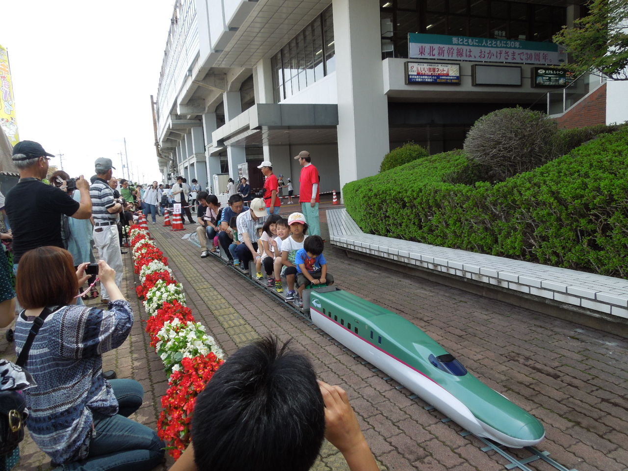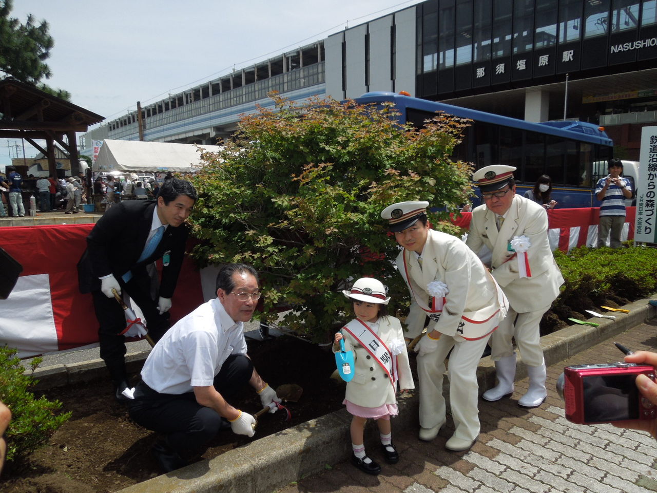 すっきりと晴れ渡っています。 暑くなりそうですが、お出かけには最適です。 昨日は、お伝えしたように、 東北新幹線開業30周年の日でした。 記念新幹線が走ったほか、 各駅で記念イベントなどが盛大に行われました。 地元の那須塩原駅でも、様々な催し。 駅主催のセレモニーもあれば、 商工会主催の出店ブースもありました。 私も午前中だけお手伝いに行ってきましたので、 ちょっとその報告。 イベントは今日も行われますので、 お近くの方、駅を利用する方はぜひ、ご参加ください。 お父さん30歳、お子さん3歳の親子が 一日駅長に。 本当の駅長さんや 那須塩原市長と一緒に 記念植樹。