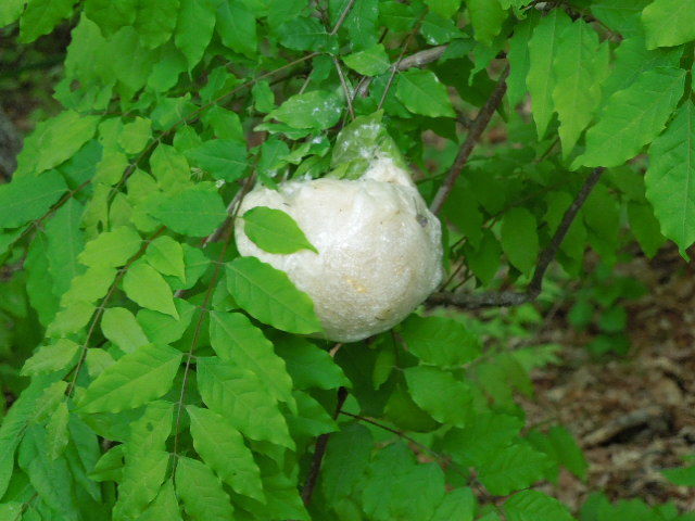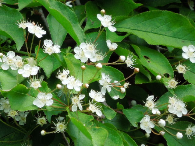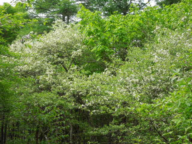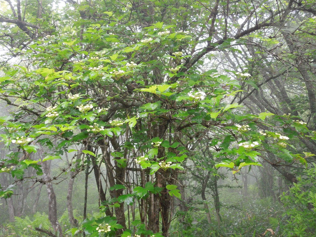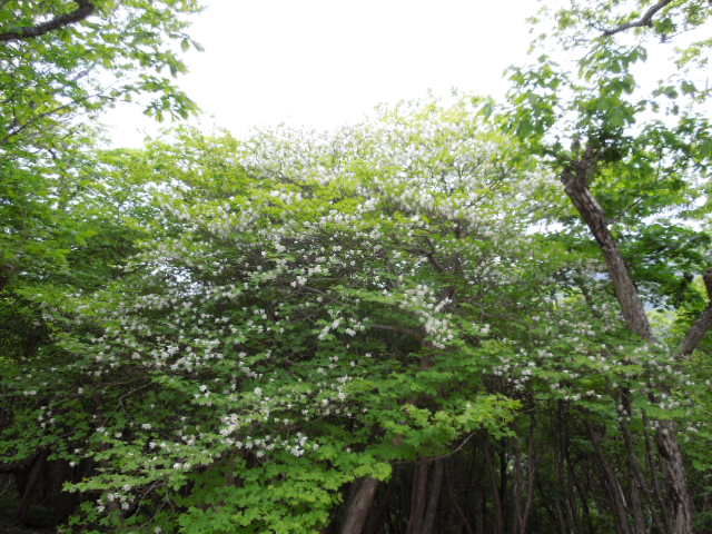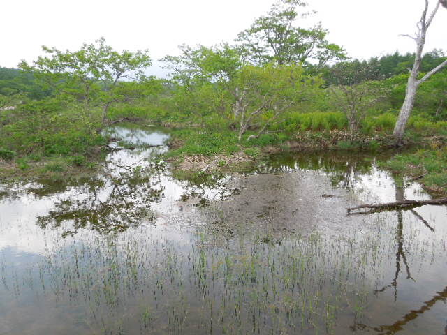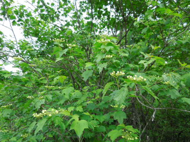 今にも雨が降りそうな気配。 予報でも一日雨の予報。 進路が非常に気になる大きな台風も近づいています。 さて、昨日の塩原ヨシ沼は大沼のすぐそばにあります。 私は、日頃から大沼にはできる限り足を運びます。 大好きな山野草に必ず出会えるし、 静寂に包まれた大沼は、私にとって、一番の癒しの場所です。 この日もほとんど人もいなくて、 ただひたすらに、エゾハルゼミとカエルの大合唱。 (これだと静寂とはいえませんね・・・) 時折、野鳥のメロディーが加わって・・・ いつ来ても期待を裏切られません。 ズミの花がまだ見られるかと思っていましたが、 もうすでにほとんど散ってしまっていました。 入れ替わるように、カンボクの花が色づき始めて。 周辺には、ヤグルマソウや、 そしてひょっとしたらという期待どおり、 モリアオガエルの産卵の卵塊が木の上に。 またきれいなまん丸のボール状で、きれいでした。 カンボク。しばらくカンボクの小道が続きます。