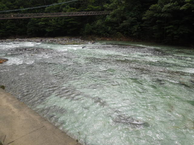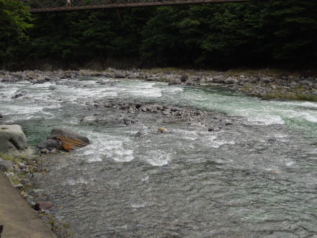 暑すぎず、寒くもなく、過ごしやすいです。 今日は驚きの報告。 台風4号があっという間に来て、あっという間に去って、 増水した濁流が、今朝、ようやく引いて 川底が見えてきました。 通常、大雨があると、転がる石で川底の藻が洗われ、 元々の緑色凝灰岩の一枚岩が出てきます。 本当に真っ青で、2〜3年に一度見られるか見られないかの景色。 今年は5月初めの大雨に続いて、2回も! と楽しみにしていたのですが・・・・ 水が引いてびっくり。 川の景色が一晩で変わっている! 上流から転がってきた大小の石がいっぱい! それまでなかった中洲ができていました。 こんなことも、那須水害以来、なかったことです。 綺麗な水色の川底が、石で覆われてしまい、がっかり。 逆に今まであった石が流されたもしているようですが・・・ 転石苔をむさず・・・ でも、あまりに転がりすぎてきた石にちょっとため息。 それでもきれいな川底はバッチリ。 これから10日ほど楽しめます。 2012年6月20日 10:03