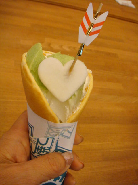 週間天気予報から雨マークが消えました。 快晴とはいかなくても、まずまずの天気が続きそうです。 若葉の緑あふれる塩原渓谷、美しいです。 さて、もう一つ塩原高原かぶを使った料理?を紹介。 話題の「とて焼」が登場です。 ウエルカム新緑!ウエルかぶ塩原♪キャンペーンに合わせて、 キャンペーンにちなんだ期間限定の 「かぶとて」を今井屋製菓さんが商品開発しました。 塩原高原かぶの葉の部分と実の部分と、 それぞれをムース状にして、 あんこ、生クリームと一緒に巻いています。 味や食感にかぶのおいしさを感じる逸品。 そして、何より秀逸なのが、 生のかぶをハートの形にくりぬいたトッピング。 「しおばラブ」にちなんだハート型ですが、 生の塩原高原かぶのおいしいこと! 6月いっぱいの限定品。 ぜひともご賞味ください。 2012年6月 3日 08:50