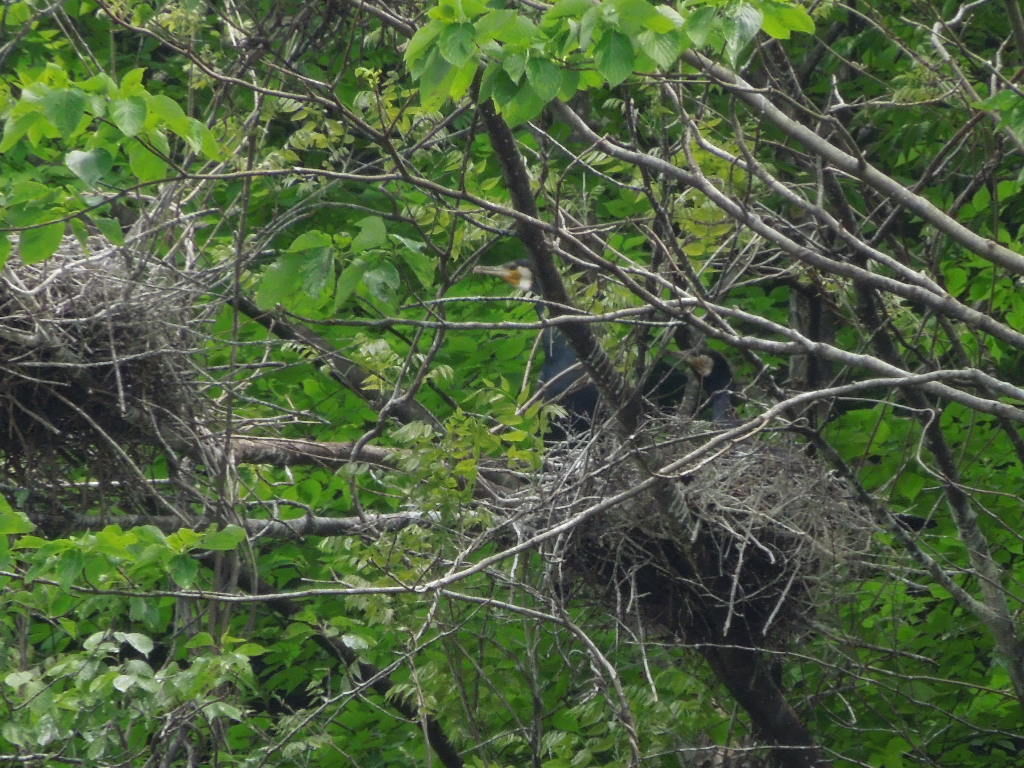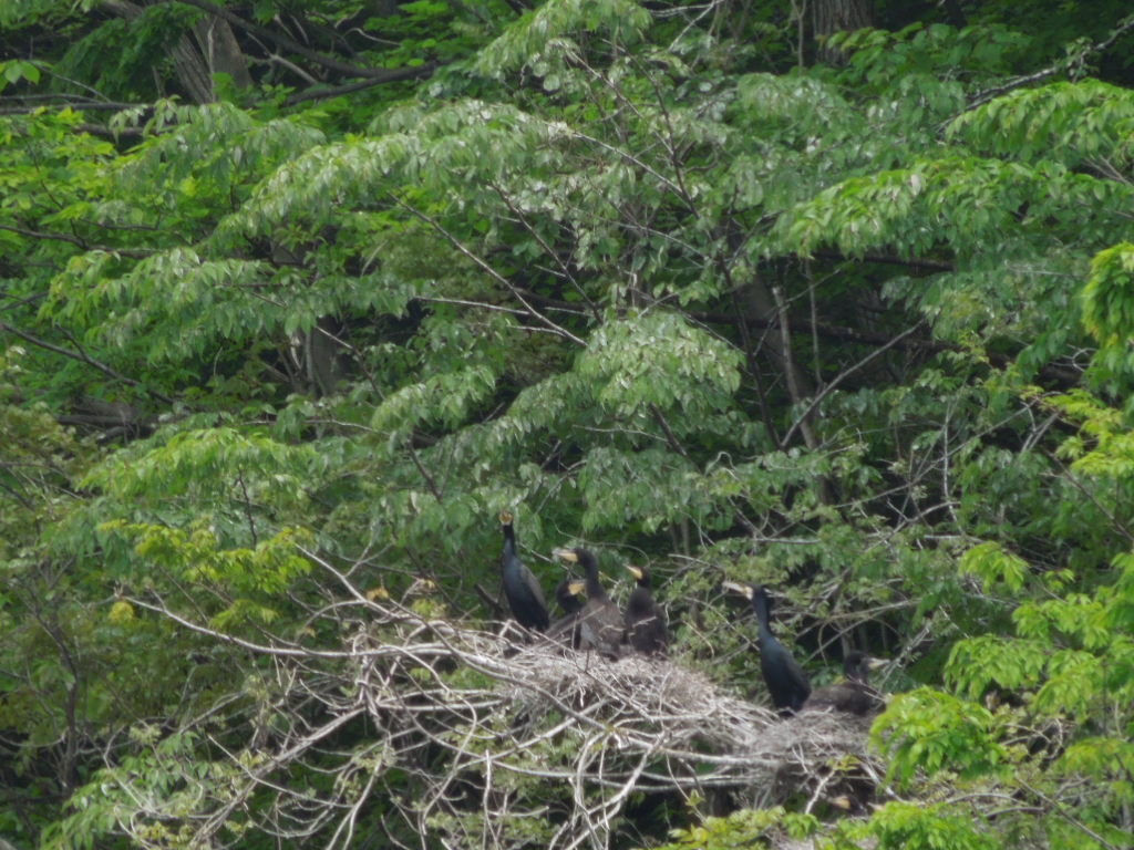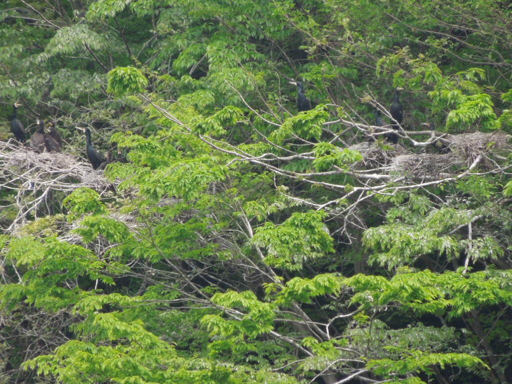 先ほどまで少し雨も降っていました。 お天気下り坂。 週末の天気が気になります。 さて、昨日紹介した塩原ダム湖のEボートツアー。 途中にカワウの巣を見ることができます。 それも、1本の木のあちこちに作られた 沢山の巣を巣立ち前のヒナたちを。 なぜか1本の木なのです。 そのあちこちに巣がかかっていて、 ボートが近づくと、一斉に警戒の声をあげ、 巣からバサバサと飛び立つのは圧巻です。 今はちょうどヒナたちが巣で大きくなりつつあり、 先日も巣立ちももうすぐといった雰囲気でした。 ダム湖の魚をみんな食べてしまうので、