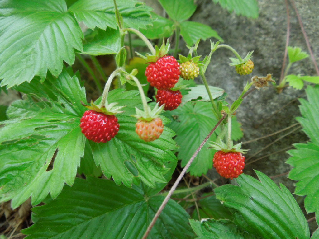 塩原温泉、今朝はよく晴れています。 夕方くらいからはくもり。 明日からもずっとくもりマーク。 貴重な晴れ間だと思います。 さて、庭を歩いていると、小さな赤い実がポツリポツリ。 シロバナヘビイチゴの実です。 英語だとワイルドストロベリーと呼ばれ、 かわいらしい姿は絵や意匠にもなっています。 よく「ヘビイチゴ」と混同されます。 先日もお客様が「ヘビイチゴ、はびこっているんですね」と。 確かに丸くて赤い実はよく似ていますが、 こちらは名前の通り白い花を咲かせるのに対し、 ヘビイチゴは、道端などで黄色い花を咲かせていますね。 実の付き方もよく見ると全然違うのがわかります。 ちょうど、別の場所に「ヘビイチゴ」がありましたので、 比較して見せながら、「いえいえ違うんですよ」とご説明しました。 「ヘビイチゴ」は毒があると思われ、 嫌われいていることがているようですが、 実は毒があるわけではなく、 食べても全然おいしくないだけなのです。 この「シロハナヘビイチゴ」は、甘酸っぱくて、香りがいいです。 ジャムにしたり、果実酒にしたりして利用できます。 石垣いっぱいになっています。 コロンと丸くて赤い実がかわいらしいです。 沢山収穫はできましたが・・・ ちなみにこれが黄色い花のヘビイチゴ。実の形も付き方も違うのがよくわかります。 2013年6月24日 08:45