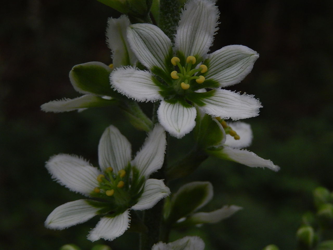 塩原温泉、今朝は、晴れました。 毎日雨模様で肌寒い日ばかりで、 朝からからっと晴れたのは久しぶりです。 久しぶりといえば、先日、10日ぶりくらいに 大沼とヨシ沼に行ってきました。 前回の時にはズミの花がほとんど散っていて、 カンボクはまだつぼみ。 そろそろカンボク咲いているはずと思って行ったのですが・・・ 10日経つと、がらりと景色が変わるものですね。 ズミはもう実が付きはじめ、 カンボクは半分以上の花が終わっていました。 ズミは前々回にばっちりと満開状態が見られたのに、 カンボクの見ごろを逃してしまって残念。 でも、今回思いがけないプレゼントが待っていました。 バイケイソウの花です。 よく考えてみると、 これだけ足しげく大沼に通っていながら、 いまだにバイケイソウの見ごろに 当たったことがなかったのです。 バイケイソウは毒草で、 あまりいい印象を持たれない花です。 毎年必ずウルイと間違えての事故が新聞に載ります。 でも、こんなにきれいな花を咲かせるとは思いませんでした。 ほの暗い森の中に、真っ白な、 まるで彫刻作品のように、形の整った清楚な花。 しかも背が高く、一面です。 見ごたえありました。 バイケイソウに対する印象が変わりました。 まだ咲き始めですので、しばらく楽しめそうです。 木道の周り一面に、コバイケイソウが。 背が高い花です。![]() よく見ると、とても清楚。![]() ![]() 2013年6月26日 09:19