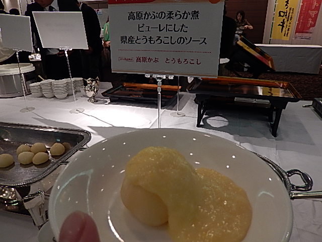 塩原温泉、今朝はくもり。 お天気少しずつ良くなるようで、 この週末には青空も見られそうです。 さて、昨日の栃木県農畜産物展示商談会、 写真がいっぱいになってしまいましたので、 今日は提案されていた料理について、 写真の紹介です。 栃木は米、野菜、畜産物など、 本当においしい食材がいっぱいで色々。 実にバランスが取れているなあと実感してきました。 前菜からデザートまで、和・洋・中華と色々な料理が並びました。 とちぎの野菜のてんぷら。ミニトマトのてんぷらがいろどりきれいでした。 肉のコーナーはやはり人気です。 塩原産かどうかはわかりませんが、高原かぶの料理も。 この横にはただホイル焼きした かぶも並んでいました。 栃木にはおいしいトウモロコシも。かぶと組み合わせて。 こんな感じでいただきます。 おいしい新鮮野菜色々、蒸して。2013年6月21日 08:57