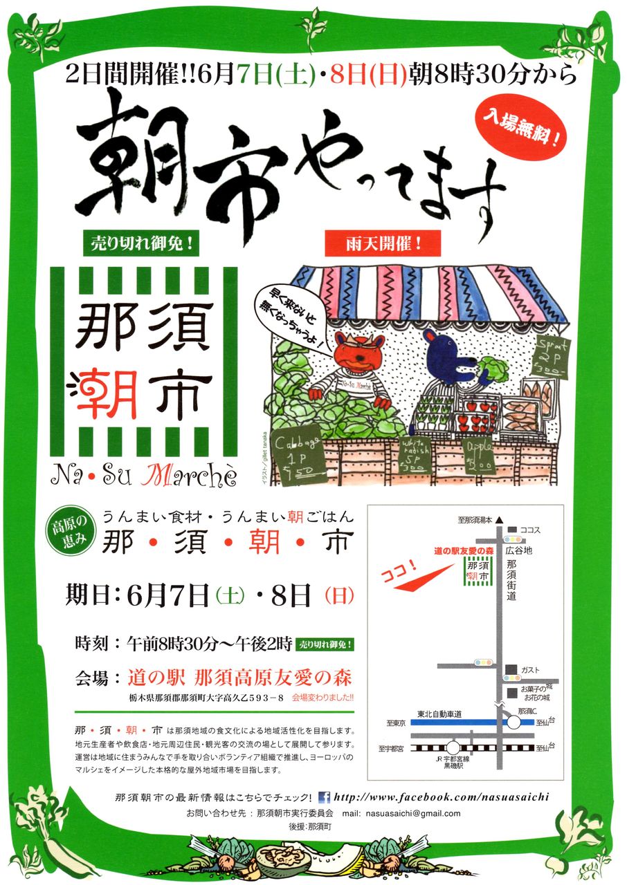塩原温泉、今朝は雨。 関東地方梅雨入りし、いきなりの本降りです。 気温も一気に下がって、肌寒いです。 これから体調管理、しっかりとです。 さて、明日、あさってと、年に2回の『那・須・朝・市』開催です。 「那須の朝ごはん」をテーマに、 那須の様々なおいしいものが集まるとあり、 回を重ねるごとに、人気が高まっているイベントです。 塩原からもとて焼や、うんまいもんプロジェクトが参加します。 昨年同様に、現在展開中の <ウエルカム新緑!ウエルかぶ塩原♪>キャンペーンのPRのため、 朝どりの塩原高冷地かぶの試食販売をします。 段々、塩原高冷地かぶのおいしさが 那須の皆さんにも浸透してきたようで、 今回は、何と、朝市さんとのコラボで、 朝市オリジナル商品、塩原かぶのピクルスを開発しました。 どんな味に仕上がっているのか、楽しみです。 今年は場所が道の駅「那須友愛の森」に変わり、 時間も8:30からとなりますので、ご注意ください。 梅雨入りして天気が心配ですが、 イートコーナーは屋根付きの場所ですし、 沢山の方のお越しをお待ちしています。 また、当館にご宿泊の方には、 豪華商品があたる抽選券をお渡しします。 前回は当館のお客様が特賞などに当選しました。 今回も特賞狙って、ぜひ、お出かけ下さい。 ![]() ![]() 那須朝市とのコラボ商品、 かぶのピクルスです。 ![]() 2014年6月 5日 08:47