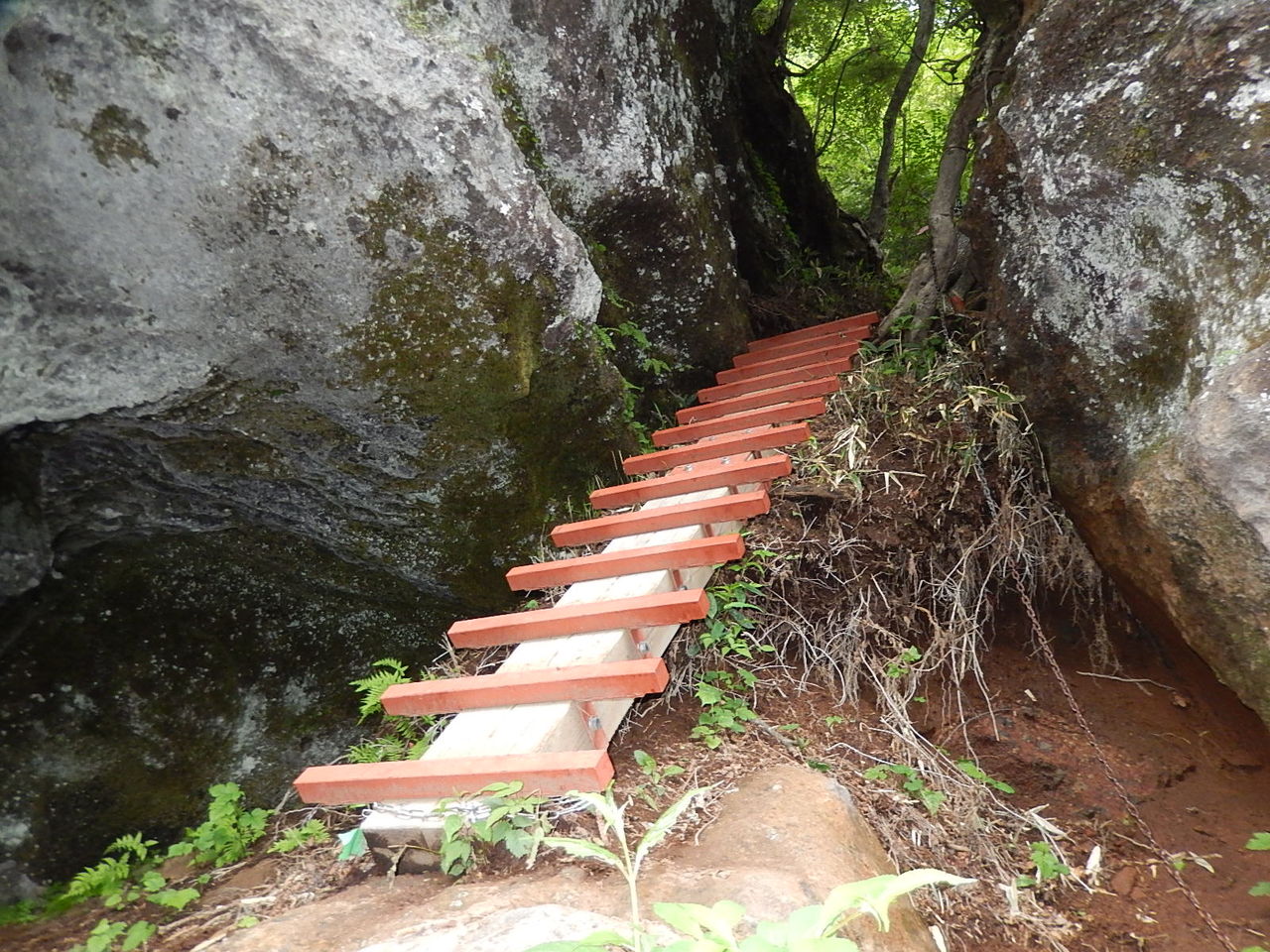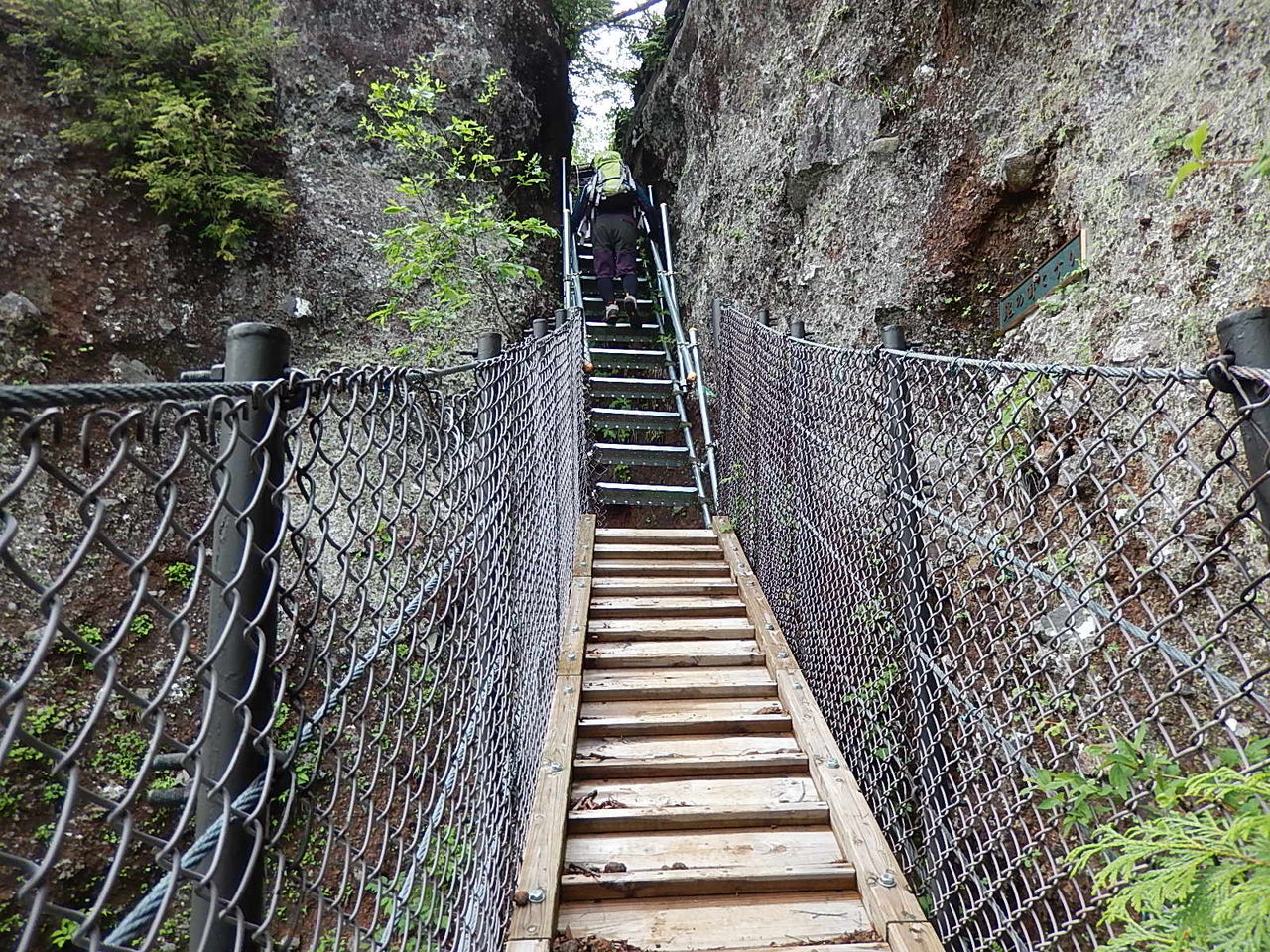 塩原温泉、今朝は薄日差すまずまずの天気です。 ただ、やはり昨日同様に、午後雨が来そう。 昨日も昼過ぎに突然の雨に突然の太陽。 天気の激変に注意が必要です。 塩原でも蛍が飛び始めています。 お客様もご覧になったそうですが、 彩つむぎの敷地内や、少し上流にも昨夜数匹。 これから夜が楽しみです。 さて、昨日の続き。 庚申山登山・・・ 思い出すだけで、「ああ、すごかったなあ」と。 朝9時に歩き始めて、車に戻ってきたのは19時半でした。 途中お昼を食べた時間を差し引いても、 10時間、歩き通しでした。 車を停めた場所から、登山道入り口まで、 まず林道を1時間ほど歩かなくてはなりません。 それもゆるく登りの道ですから、それだけでも大変。 途中「天狗の投石」という、 大きな石がごろごろと斜面いっぱいの面白い場所が。 そして登山道入り口である一の鳥居から、 またさらに登りになります。 次に目指すポイントは庚申山荘。 そこまでは普通の登山道ではあるものの、 途中、階段なども多く、すでに腿が疲れ始めてきます。 1時間ほどでようやく庚申山荘。 庚申山荘付近で、シカ発見。 人の姿を見ても、あまり逃げないのです。 人慣れしているのか、まだ若い鹿なのか。 そこまでの疲れを一気に忘れてしまうような なかなか撮れないような写真が撮れてニコニコ。 山荘にも到着し、お昼を食べてひと休み・・・ ここまですでに約2時間。 疲れてますが、まだ序の口でした。 この後、山頂までの道は二者択一。 時計回りに普通の登山ルートを行くか、 ハードな「お山めぐり」と呼ばれる奇岩の連続のルートを行くか・・・ 事前情報で、時計回りに、上りは普通の登山ルートで行き、 下りに「お山めぐり」をするといいとのことでしたので、 当然より楽と思われる、普通の登山ルートを選択です。 ところが、この普通の登山ルートも一筋縄ではいきませんでした。 かなりの急傾斜の登りの連続です。 何箇所も梯子や鎖場が・・・ そういう登山は初めてだったので、それだけで驚きですが、 雷雨もやってきて、途中、達磨太子が修行しそうな岩場で雨宿り。 当然手袋はしているものの、梯子も鎖もすべりやすく。 すでに、ひーひー言っているコースで すれ違うのは、ここでも60代〜70代と思しき方々ばかり。 山で会う高齢者の方、どれだけタフなんでしょう。 途中、コウシンコザクラ(ユキワリソウ)の群生地があったり、 それなりに楽しみながら、 すれ違う方にコウシンソウ情報を聞きながら、 しっかりとコウシンソウを見て感動し、 山頂にも到達して、さあ、それからです。 本当に大変だったのは。 下山に選択した「お山めぐり」のルートが、 思っていた以上に、 というか、想像をはるかに超える難所続きだったのです。 滝沢馬琴の『南総里見八犬伝』の舞台にもなった場所。 下山のはずなのに、かなりの急斜面を登ったり、 全く道がないような斜めになっている岩場を鎖で進んだり、 垂直に切り立った岩を梯子や鎖で登ったり、 幅50センチくらいしかないような尾根を伝ったり、 岩と岩の間を吊橋で渡ったり・・・ 「え〜、ここ本当に登るの?」 「え〜、ここ本当に歩くの?」 もう笑うしかないような、そんなルートで、 でも笑っていたら危険ですから、 身体の全筋肉と全神経を集中させて、 ロープや鎖や梯子をしっかりとつかんで、必死です。 どこかでピアスを片方落としたようですが、 自分が落ちなくて良かった・・・ 6月で日が長いとはいえ、少しずつ暗くなってくるし、 鹿たちの警戒の声が聞こえてきたり、緊張も高まります。 登山道を下りて林道に出た時にはホッとしました。 それでもさらに林道を1時間は歩かねばならず・・・ 車に着き、すぐそばの国民宿舎「かじか荘」で、 温泉に入った時には、足はガクガクで、すでに太ももは筋肉痛。 こんなに歩いたのは、生まれて初めて? よく、歩けたものです。 でもそんな大変な思いをしてでも、 コウシンソウに会いに行って本当に良かったです。 花の命は短くて・・・ いつも花との出会いは「一期一会」だと思っています。 その出会いを大切にしています。 次にはどんな花と出会えるかな。 いつもそんなワクワク感で、いざ野山へ! もう次の登山に行きたくなっている私です。 ![]() ![]() ![]() 手前の石の道標は文久2年とありました。 江戸時代から庚申信仰の山。 ![]() ![]() 岩と岩の間の狭い所を通ります。 まるで結界のようです。 ![]() ![]() ![]() ![]() 泊まることもできます。 ![]() びっしりとコウシンコザクラが咲く断崖が。 ![]() ![]() ![]() ![]() ![]() ![]() ![]() 花から視線を前に移すと・・・ 道がない! えっ、ここ歩いて行くの? ![]() あれ、道じゃないような・・・ ![]() ![]() ![]() ![]() ![]() ![]() ![]() 不思議な岩です。 ![]() 笹薮のなかをくねくねと、一の鳥居まで。 2014年6月20日 08:43