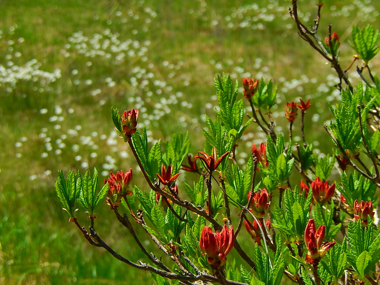 塩原温泉、今朝はくもり。 昨日、一昨日と、かなり雨が降りました。 梅雨入りしてすぐに、これだけ雨が降るのは かなり珍しいような気がします。 とりあえず、今朝は雨が上がっていますが、 予報では雨マーク、続いています。 さて、先日、塩原ヨシ沼のワタスゲを見てきました。 ワタスゲは花を付けた後の 白いフワフワの綿毛(花被片)が 湿原などを一面に覆います。 尾瀬や奥日光戦場ヶ原などが群生地として有名です。 そんなワタスゲが塩原でも見られます。 今年は例年よりも花つきが良いとのことです。 ワタスゲって、よく見るとフワフワの毛が巴形に 回っているようなのですね。 撮影は一週間前。 ズミやミツガシワはもう終わりですが、 レンゲツツジはこれからでした。 気持ちの良い風が渡り、 ゆっくりと過ごしたい場所です。 沼のほとりに、小さな小さなモウセンゴケも。 目をこらせば、そろそろ日本一小さなハッチョウトンボも見つかるかな。 ![]() ![]() ![]() ![]() ![]() ![]() ![]() ![]() ![]() 2014年6月 8日 00:14
