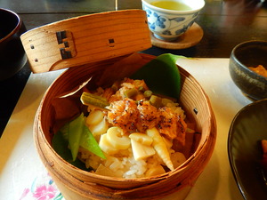 塩原温泉、今朝は雨です。 予報は一日じゅう雨。 しばらく、雨がちな日が続きそうです。 さて、女将の会の山形研修、 サクランボ狩りの後は、すぐ近くにある 東根市の麩料理の店で昼食を取りました。 東根市といえば、サクランボぐらいしか知らなかったのですが、 東根市の羽州街道沿い、六田地区では、 小麦の生産に適した地であり、 六田水と呼ばれる名水の地でもあることから、 500年ほど前から麩が作られていて、名物となっているそうです。 現在9つほど、麩生産所があり、麩料理専門店が何軒があるようです。 その内の一つの「文四郎麩」にお邪魔してきました。 先付から、水菓子まで、 全て麩が使われている麩づくしの懐石料理です。 当館でも乾燥麩や生麩を料理に使いますが、 ここまで多彩な麩料理を味わえるとは思いませんでした。 田楽は言うに及ばず、 佃煮、和え物、酢の物、お造り、煮物、ご飯、コロッケ、デザートも! かなり仕込みもしっかりとしていて、お味もよく、脱帽です。 お土産などの販売品も充実。 生麩を買って帰りたかったのですが、 一日目だったので、泣く泣く断念。 麩のから揚げなるものを買ってきましたけど、 これもまたおいしくて、近ければ絶対にリピートですね。 前菜、吸い物、和え物など。色々な素材との組み合わせも楽しいです。 麩コロッケ、意外なおいしさ! お造りは生麩をゆばと組み合わせて。 雲片。あんかけ料理。 酢の物。サクランボが! 筍ご飯の上に、焼き鳥のようにした麩が。 鶏皮のよう。 煮物。いぶり大根と。 美味でした。 水菓子は当然麩まんじゅう。 焼き麩を作っているところ。細い棒いくるくると巻き付けています。 このTシャツ、いいですね。 焼き上がったもの。香ばしい香りが〜。 おみやげ品も充実です。 冷蔵のもの、買って帰れなくて残念! |