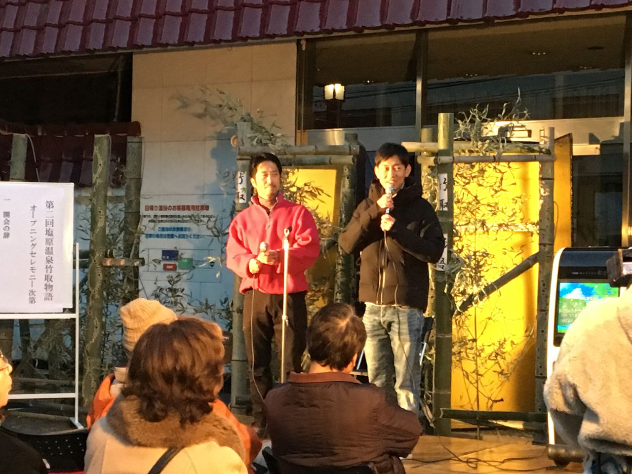 塩原温泉、今朝は晴れ。 クリスマスの今日も、一日良い天気に恵まれそうです。 さて、昨日はどんなクリスマスイブの夜を過ごされたでしょうか。 お子様たちに、サンタクロースのプレゼントは届いたかな。 自分自身は毎年仕事ですから、 クリスマス気分を味わうどころではないのですが、 昨日は、お伝えしたように、 「塩原竹取物語」の点灯式がありました。 これから毎夜17時より、 七色の光が塩原温泉街の冬の夜を彩ります。 点灯式には、 現在テレビ朝日「イチから住」の番組のために、 那須塩原市に住んで、あちこち紹介してくれている 俳優の川岡大次郎さんも参加。 川岡さんは、実際に竹灯籠の製作にも参加し、 どこかに、川岡さんのサイン入りの灯籠もあるそうです。 塩原温泉街の門前地区、 妙雲寺山門と、 その前のホテルニュー塩原夕仙郷、 古町地区へと抜ける橋の欄干から川沿いなどで この竹灯籠を楽しむことができます。 彩つむぎにお泊りの場合は、 夕食の前のお時間、17時より楽しむか、 夕食後に楽しむか、どちらかになるかと思います。 歩くと15分くらい。 お車でお出かけになる場合は、 門前交流広場か、塩原もの語り館に車をお停め下さい。 そして暖かい服装でお出かけ下さい。 ![]() ![]() ![]() ![]() ![]() ![]() 2016年12月24日 09:02