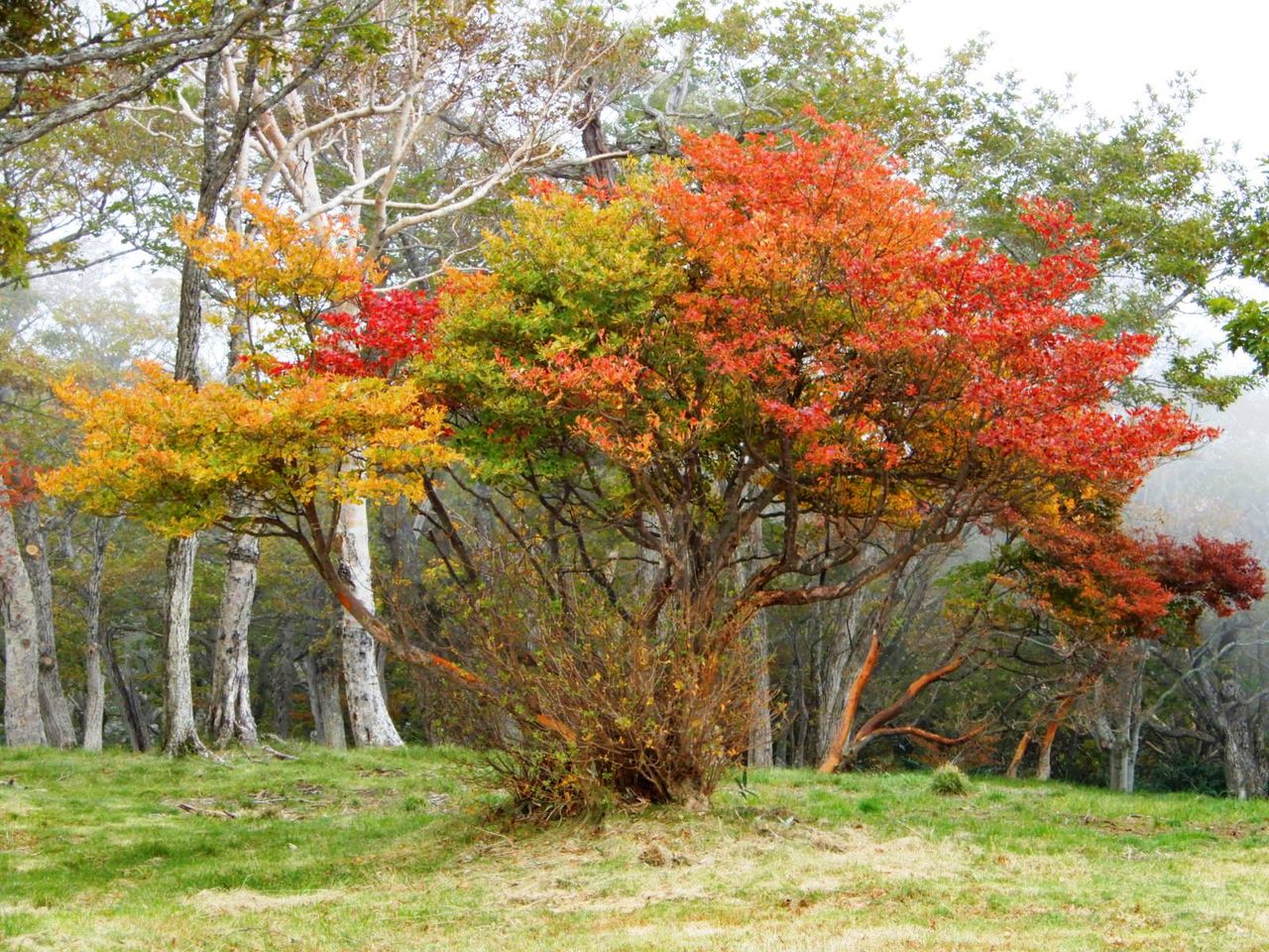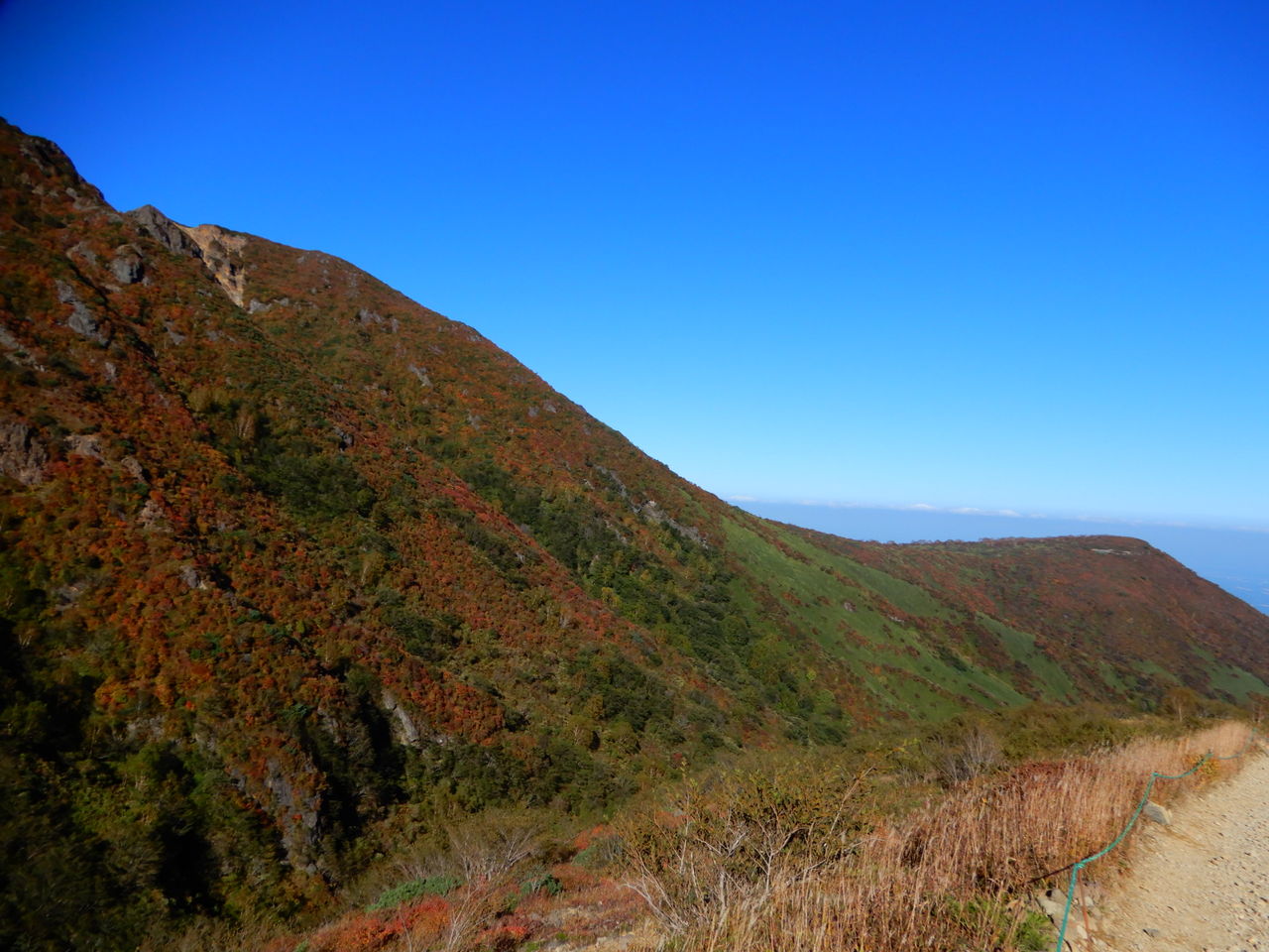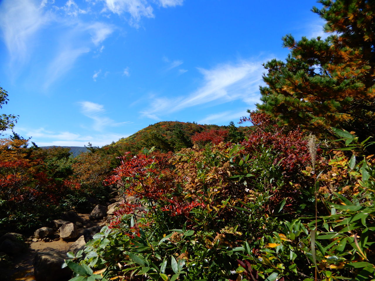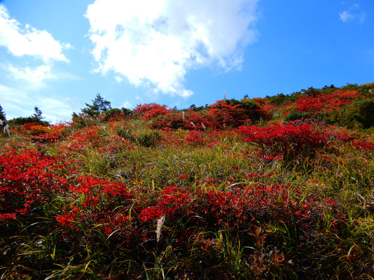 塩原温泉、即位の礼の本日は雨。 今日は一日雨模様。 明日は晴れ時々くもりのまずまずの天気。 明後日からは再びくもりがちになるようです。 さて、台風19号が去って数日後、 マウントジーンズの紅葉ゴンドラに乗って・・・ とりあえず、山頂遊歩道だけを歩いてみるつもりでした。 トレッキングシューズに履き替え、 飲み物とお財布バッグだけの軽装で。 ところが、 ゴンドラに乗って山頂に着いたところ、 清水平や三本槍岳方面に向かう、 中の大倉尾根から上のほうの紅葉が、どうもきれいに見えます。 中の大倉尾根は2回歩いたことがあり、 ポイントや距離感などわかっていましたから、 結局、分岐点の所で、遊歩道の方には曲がらず、 そのまま、まっすぐ、中の大倉尾根を途中まで歩いてみることに。 このルート、結構好きなルートなのです。 登りが長いけど、急登ではないし、 樹林帯ほどではないけど、花はあるし、 途中から、茶臼岳と朝日岳がどか〜んと見えるし。 所々、ゴヨウツツジが美しいグラデーションに紅葉していました。 そして、思ったとおり、上に行けば行くほど、 前方に、クマザサとおそらくツツジの紅葉の、 緑と赤のコントラストが美しい山肌が見えてきます。 茶臼岳と朝日岳がどか〜んと見えるポイントまで。 山頂から大体30分くらいの場所になります。 この日はここで満足。 時間がなかったので、下りは少々駆け下りるくらいになり、 いい運動になりました。 このルートを歩けるのは、 那須マウントジーンズのゴンドラが運行している時だけ。 できれば、今シーズン中に、もう一度、 時間に余裕を持って、三本槍岳まで行ってみたいなあ。 (と、一昨日のブログでも。三本槍岳は私には少々遠いなあ・・・) ![]() ![]() ![]() ![]() ![]() ![]() ![]() ![]() ![]() ![]() ![]() ![]() ![]() ![]() ![]() ![]() ![]() 2019年10月21日 08:55