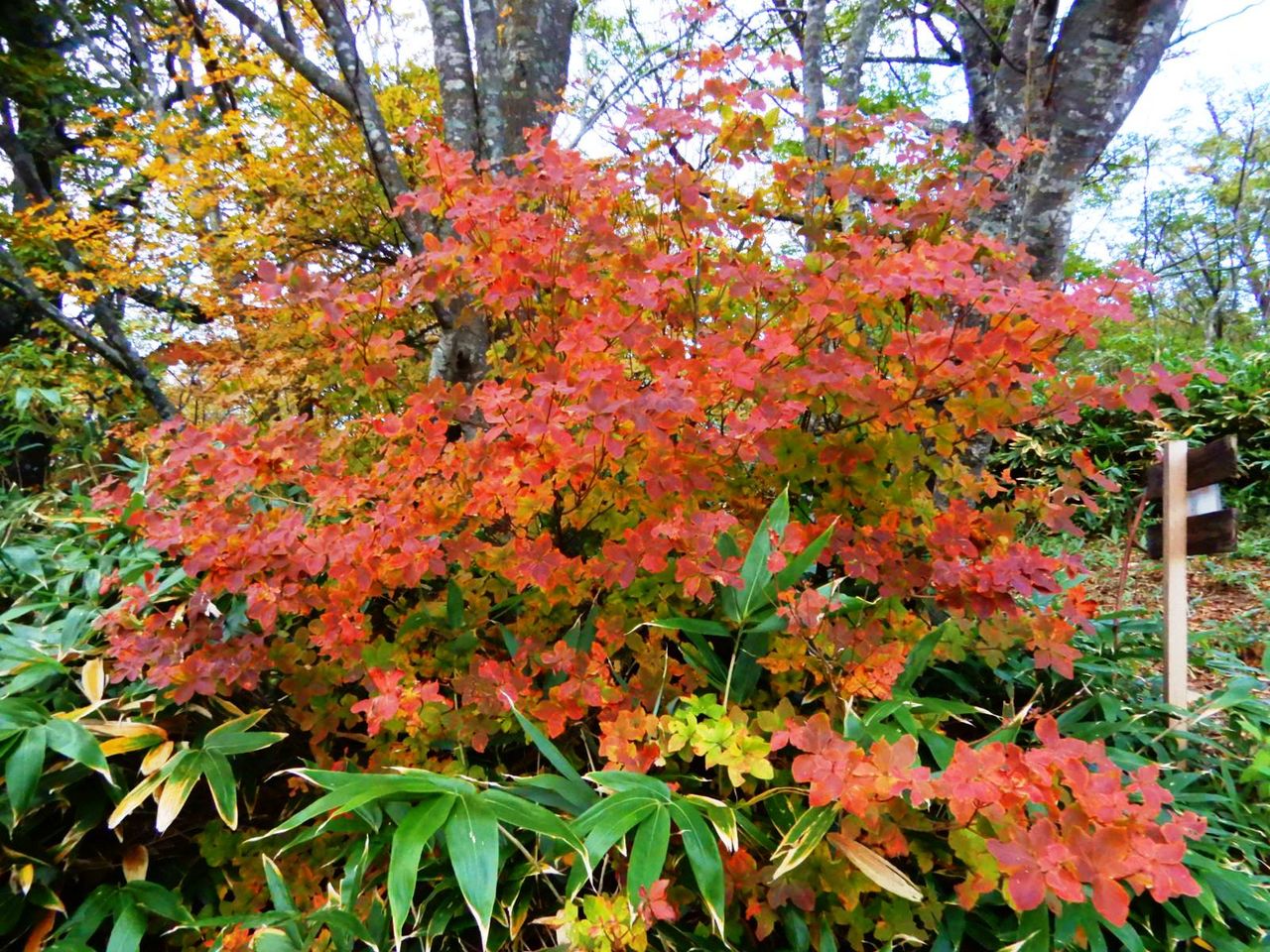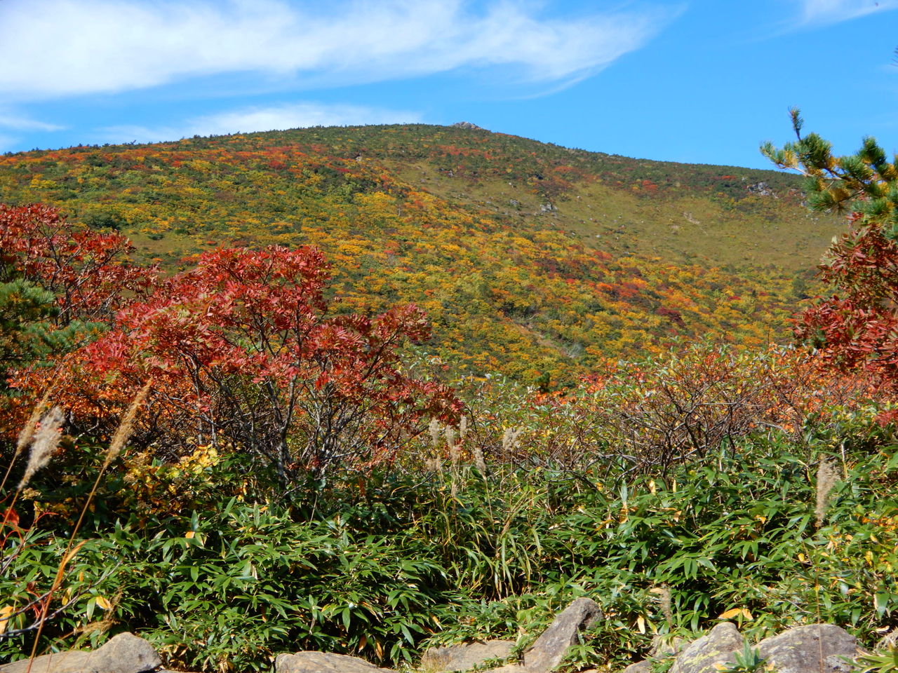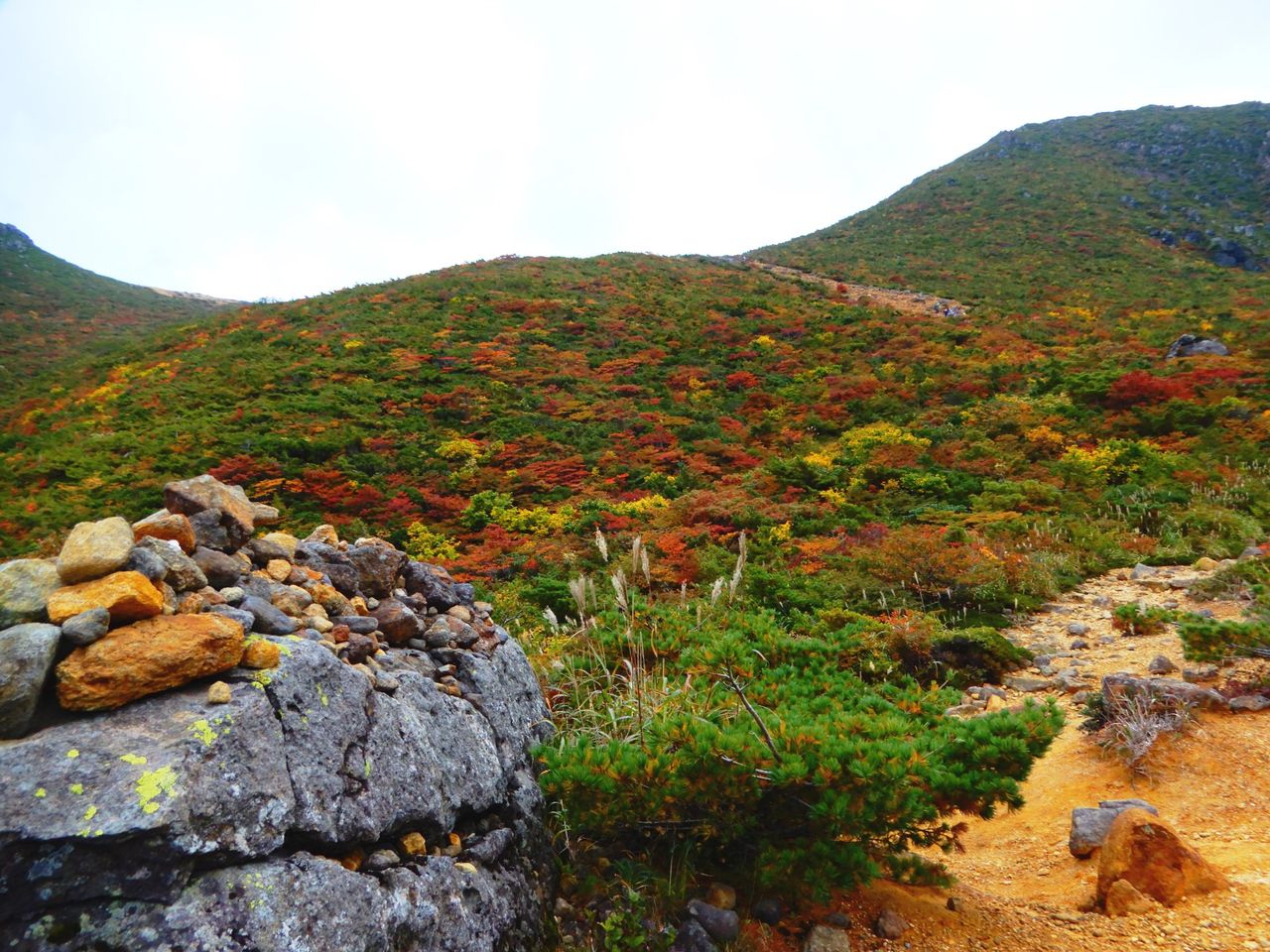 塩原温泉、即位の礼の本日は雨。 今日は一日雨模様。 明日は晴れ時々くもりのまずまずの天気。 明後日からは再びくもりがちになるようです。 さて、台風19号が去って数日後、 マウントジーンズの紅葉ゴンドラに乗って・・・ とりあえず、山頂遊歩道だけを歩いてみるつもりでした。 トレッキングシューズに履き替え、 飲み物とお財布バッグだけの軽装で。 ところが、 ゴンドラに乗って山頂に着いたところ、 清水平や三本槍岳方面に向かう、 中の大倉尾根から上のほうの紅葉が、どうもきれいに見えます。 中の大倉尾根は2回歩いたことがあり、 ポイントや距離感などわかっていましたから、 結局、分岐点の所で、遊歩道の方には曲がらず、 そのまま、まっすぐ、中の大倉尾根を途中まで歩いてみることに。 このルート、結構好きなルートなのです。 登りが長いけど、急登ではないし、 樹林帯ほどではないけど、花はあるし、 途中から、茶臼岳と朝日岳がどか〜んと見えるし。 所々、ゴヨウツツジが美しいグラデーションに紅葉していました。 そして、思ったとおり、上に行けば行くほど、 前方に、クマザサとおそらくツツジの紅葉の、 緑と赤のコントラストが美しい山肌が見えてきます。 茶臼岳と朝日岳がどか〜んと見えるポイントまで。 山頂から大体30分くらいの場所になります。 この日はここで満足。 時間がなかったので、下りは少々駆け下りるくらいになり、 いい運動になりました。 このルートを歩けるのは、 那須マウントジーンズのゴンドラが運行している時だけ。 できれば、今シーズン中に、もう一度、 時間に余裕を持って、三本槍岳まで行ってみたいなあ。 (と、一昨日のブログでも。三本槍岳は私には少々遠いなあ・・・) ![]() ![]() ![]() ![]() ![]() ![]() ![]() ![]() ![]() ![]() ![]() ![]() ![]() ![]() ![]() ![]() ![]() 2019年10月21日 08:55