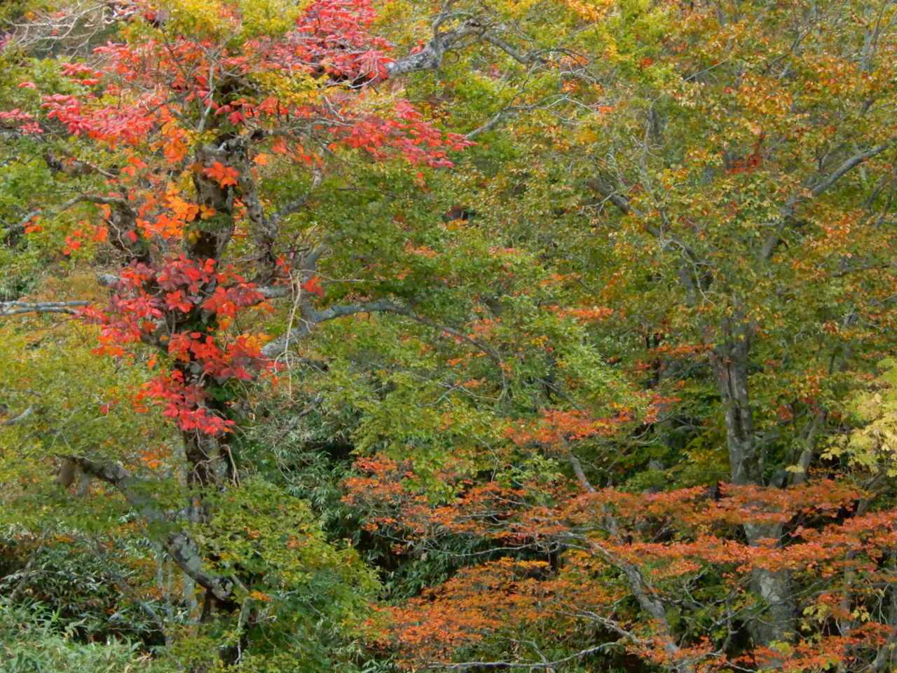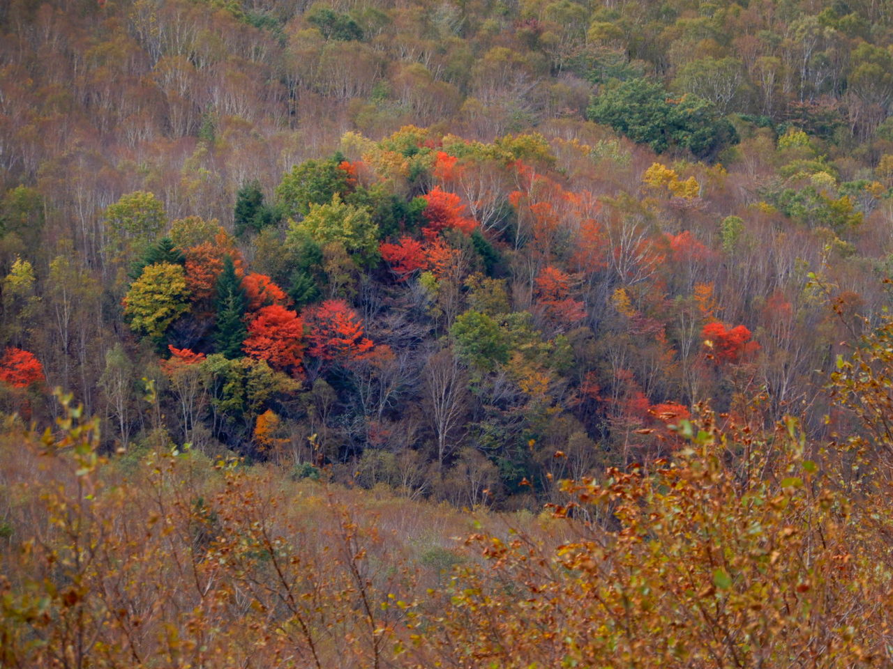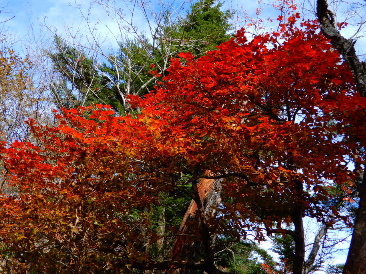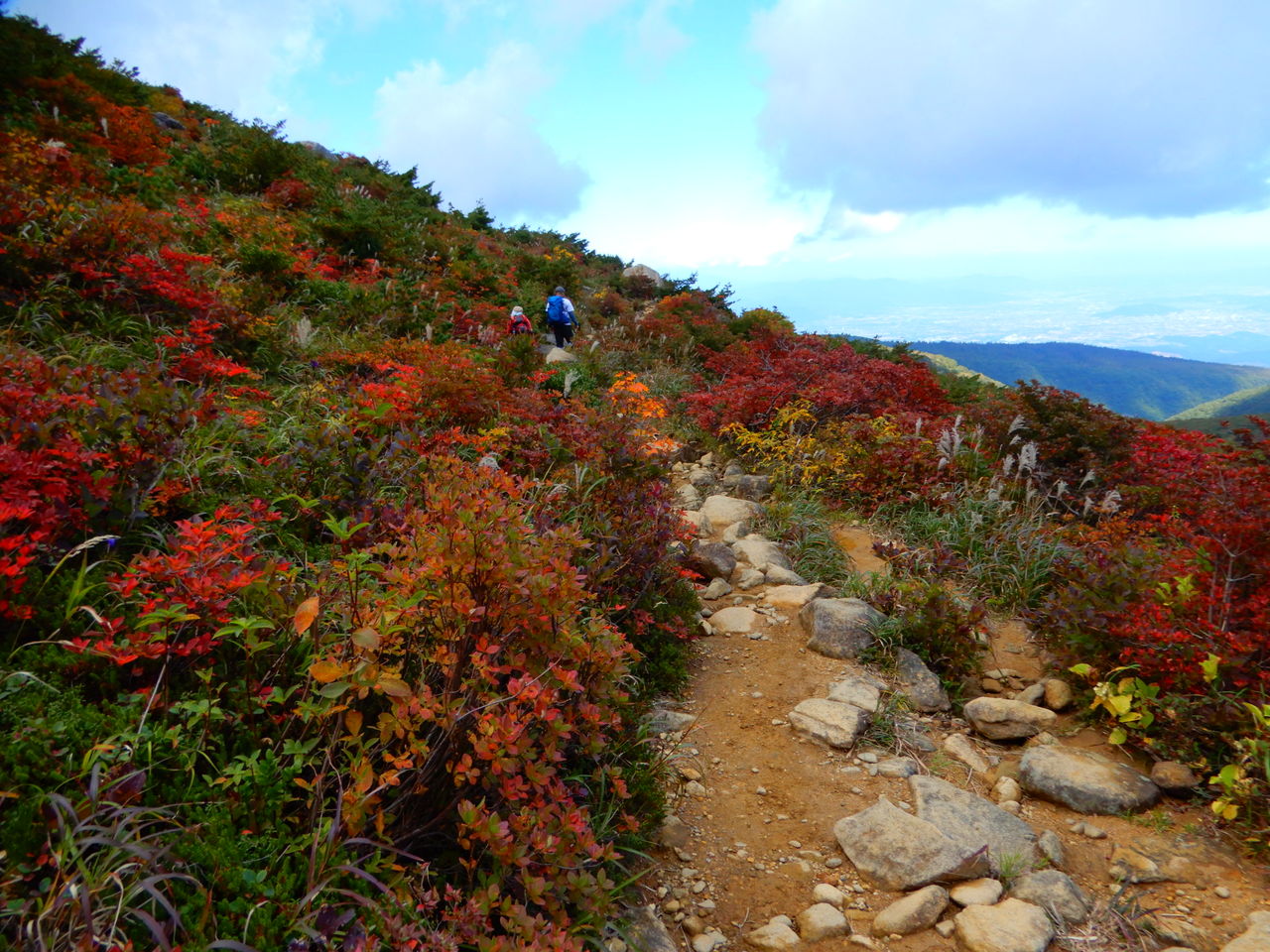 塩原温泉、即位の礼の本日は雨。 今日は一日雨模様。 明日は晴れ時々くもりのまずまずの天気。 明後日からは再びくもりがちになるようです。 さて、台風19号が去って数日後、 マウントジーンズの紅葉ゴンドラに乗って・・・ とりあえず、山頂遊歩道だけを歩いてみるつもりでした。 トレッキングシューズに履き替え、 飲み物とお財布バッグだけの軽装で。 ところが、 ゴンドラに乗って山頂に着いたところ、 清水平や三本槍岳方面に向かう、 中の大倉尾根から上のほうの紅葉が、どうもきれいに見えます。 中の大倉尾根は2回歩いたことがあり、 ポイントや距離感などわかっていましたから、 結局、分岐点の所で、遊歩道の方には曲がらず、 そのまま、まっすぐ、中の大倉尾根を途中まで歩いてみることに。 このルート、結構好きなルートなのです。 登りが長いけど、急登ではないし、 樹林帯ほどではないけど、花はあるし、 途中から、茶臼岳と朝日岳がどか〜んと見えるし。 所々、ゴヨウツツジが美しいグラデーションに紅葉していました。 そして、思ったとおり、上に行けば行くほど、 前方に、クマザサとおそらくツツジの紅葉の、 緑と赤のコントラストが美しい山肌が見えてきます。 茶臼岳と朝日岳がどか〜んと見えるポイントまで。 山頂から大体30分くらいの場所になります。 この日はここで満足。 時間がなかったので、下りは少々駆け下りるくらいになり、 いい運動になりました。 このルートを歩けるのは、 那須マウントジーンズのゴンドラが運行している時だけ。 できれば、今シーズン中に、もう一度、 時間に余裕を持って、三本槍岳まで行ってみたいなあ。 (と、一昨日のブログでも。三本槍岳は私には少々遠いなあ・・・) ![]() ![]() ![]() ![]() ![]() ![]() ![]() ![]() ![]() ![]() ![]() ![]() ![]() ![]() ![]() ![]() ![]() 2019年10月21日 08:55
