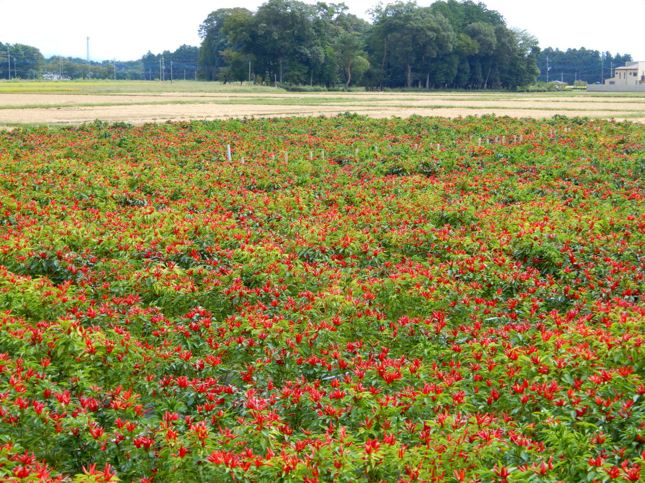 塩原温泉、今朝は雨。 ぐっと季節が進んだようで、肌寒く感じます。 今日は日中雨ですが、夕方からお天気回復して、 明日は晴れとなっています。 明日の土曜日、各地の行楽地は人で賑わうのではないでしょうか。 さて、昨日、彼岸花を紹介した 西那須野の産直所、そすいの郷周辺の、 もう一つの風景を。 一面のトウガラシ畑。 お隣の大田原市は、 トウガラシ生産が日本一。 トウガラシの郷としてPRしていますが、 西那須野でもトウガラシを作る農家があるんですね。 大田原市の影響かな。 この辺ではあまり見かけることがなく、 ここで見たのも初めてです。 稲が実った田んぼの中に、 真っ赤なトウガラシの実はとても目立ちます。 ちょっと元気をもらえそうな風景でした。 ![]() ![]() ![]() ![]() ![]() 2019年10月 3日 08:36