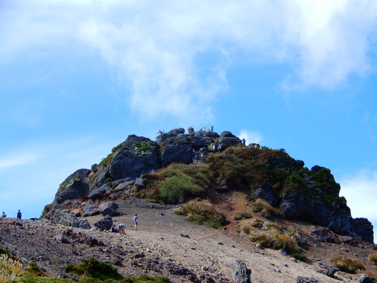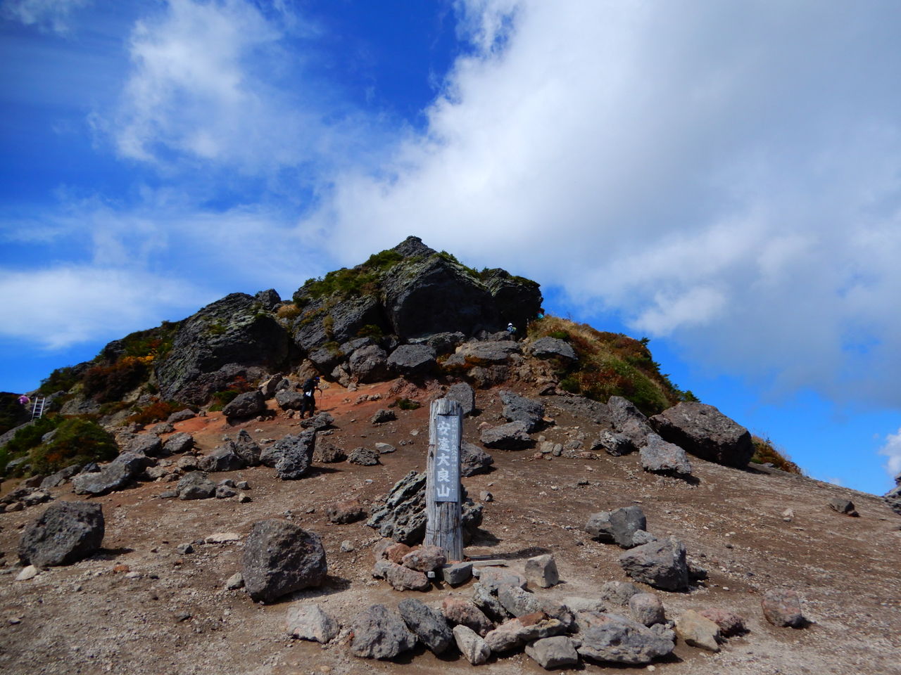 塩原温泉、今朝はくもり。 昨日の雨は夜になって上がりました。 予報では今日明日とくもり時々晴れ。 まずまずの天気の週末になりそうです。 今日明日と、市内黒磯地域では、那須野が原巻狩まつり。 市内最大のお祭りになります。 また明日はクラシックカーのレース 「La Mille Miglia」が塩原を通過します。 昨年お出迎えしましたが、 博物館でしか見られないような すごいクラシックカーが100台以上、 温泉街を走る風景は圧巻でした。 塩原通過はお昼頃になるようです。 さて、かなり後からのレポートになってしまいましたが、 塩原の紅葉レポートに入る前に、 お隣の県、福島のすばらしい紅葉を。 9月の終わりに初めて、 福島県の安達太良山に登ってきました。 安達太良山は那須連山から見え、 また、東北新幹線や東北自動車道からもよく見える山。 「智恵子抄」で有名でもあり、 一度は登ってみたいなあと思っていましたが、 なかなか、一人では行く機会がありませんでした。 川治温泉にある、アウトドア会社の「Nature Planet」さんの、 福島県の山トレッキングに申し込み、 連れて行っていただきました。 東北自動車道で二本松インター下車。 岳温泉を通って、安達太良山ロープウエイへ。 冬はスキー場。 茶臼岳と同じように、ロープウエイで途中まで行けます。 ロープウエイの駅に、 紅葉ピークの頃の安達太良山のポスターが貼ってありました。 「もう少し後だったら、こんなにきれいになるんだね」 なんて、言っていたのですが、 実際に登ってみたら、紅葉がすでに始まっていました。 ナナカマド、ツツジなどが真っ赤。 足元にはリンドウ、ヤマハハコ、アキノキリンソウなど。 ポスターに近い状態の安達太良山を楽しむことができました。 前を見れば紅葉の安達太良山。 後ろをふり返れば、福島の平野部が広がる絶景。 何度も登山をしていますが、 こういう最高のコンディションでの登山は、 そうそう多くはありません。 安達太良山は別名「乳首山」と呼ばれているそうです。 山頂に近づいてくると、その意味がよくわかります。 くすっと笑ってしまうようなその形。 山頂は沢山の人で賑わっていました。 山頂からはぐるり360度の展望。 いつもこちらを見ていた那須連山も見えるし、 会津磐梯山も見えて、こちらも絶景です。 山頂からくろがね小屋まではまた明日に。 ![]() ![]() ![]() ![]() ![]() ![]() ![]() ![]() ![]() ![]() ![]() ![]() ![]() 2019年10月25日 09:05
