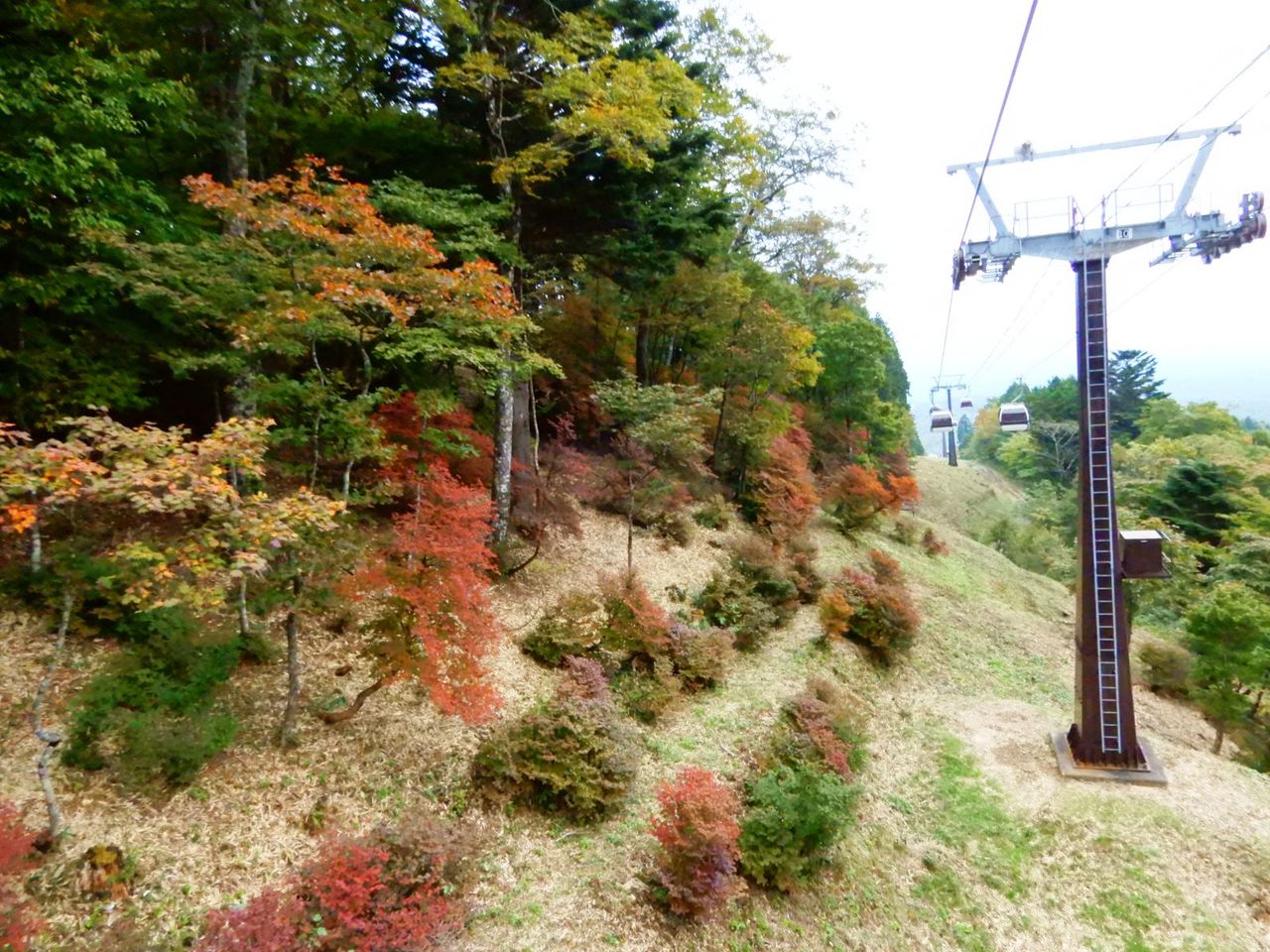 塩原温泉、今朝はくもり。今日は一日くもり。 そして明日の新天皇即位式の日は一日雨予報です。 その後もしばらくくもりの天気が続きます。 さて、台風直前に歩いてきた那須連山の様子を 連日リポートしてきましたが、 台風の後に、今度は那須連山の反対側の端に位置する、 那須マウントジーンズの紅葉ゴンドラに乗ってきました。 那須マウントジーンズの紅葉ゴンドラは 10/1から11/4まで営業しています。 毎年、様子を見に行きますが、 どのタイミングで行くか、とても迷います。 できれば、一番いいタイミングの紅葉が見たいですものね。 今年はどうでしょうか。 こちらのゴンドラは標高950mから1410mへ。 ちょうど真ん中辺りに植えられている ゴヨウツツジは、渋い赤の色に紅葉していました。 他にツタウルシが真っ赤。 ナナカマドは今一つ色が出ていないような。 まだ緑の木がほとんどです。 山頂には、一本、 緑〜黄〜赤のグラデーションが美しいゴヨウツツジがありました。 その他の山頂遊歩道周辺のゴヨウツツジは オレンジ色から茶色。 ゴヨウツツジは雅子皇后陛下が好きな花で、 愛子様のお印にもなっています。 普通紅葉は標高が高い所から低い所に、 徐々に下りてくるパターンなので、 山頂よりも中腹のほうが色がきれいなのが不思議です。 今年は秋の冷え込みが遅いから、 紅葉も遅くて、これからなのか、 今年は、こういう色なのか、判断に困っています。 もう一度くらい見に行ければいいなあ。 那須マウントジーンズの紅葉ゴンドラは 8:00〜15:30(下り最終は16:00)です。 ![]() ![]() ![]() ![]() ![]() ![]() ![]() ![]() ![]() ![]() ![]() 2019年10月20日 08:44