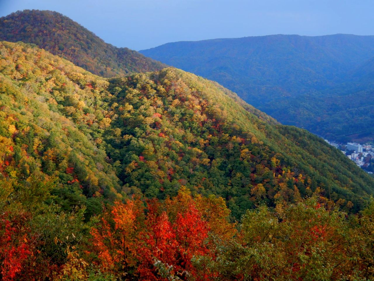 塩原温泉、今朝は晴れ。 昨日お伝えしたように、しばらく晴れの日が続きます。 今日で10月も終わり。 10月下旬に入って、一気に塩原の紅葉が進んでいます。 紅葉は山の上から下へと下りてきます。 ハンターマウンテン紅葉ゴンドラに続いて色づくのは、 こちらの塩那スカイライン。 元々は、塩原と那須(板室)を結ぶために作られた道路ですが、 現在は、塩原からも板室からも、 途中までしか通行できない道路となっています。 スカイラインと名前が付いているだけあって、眺めが最高。 塩原で最も眺望の良い場所です。 晴れれば、日光連山の女峰山や日光白根山まで良く見えます。 ぐずついた天気が続いた後、 ちょっと雨が上がった時に、 そろそろかなと思って、急ぎ車を走らせたところ、 やっとウルシなどが真っ赤に。 心配していた色も問題なく、 山全体が錦の色のモザイク模様になって、とてもきれいです。 今日明日と二日に分けて。 今日は山全体がわかるような遠景写真を。 最後の一枚は、国道400号をはさんだ、 向かい側の山からの塩那スカイライン全景です。 山の斜面をジグザグに道路が走っているのがわかるかと思います。 ![]() ![]() ![]() ![]() ![]() ![]() ![]() ![]() ![]() ![]() ![]() ![]() ![]() ![]() ![]() 2019年10月30日 08:56