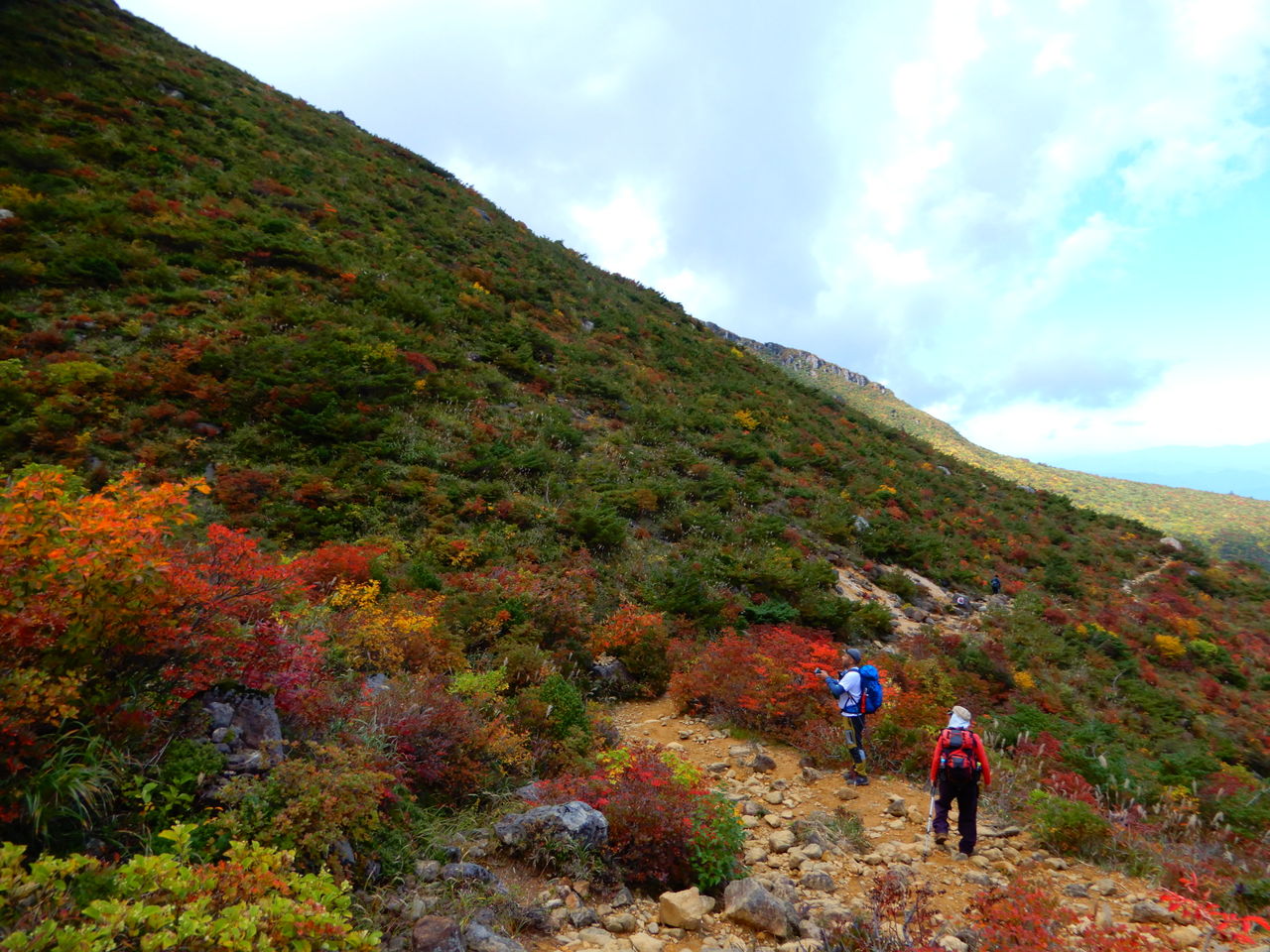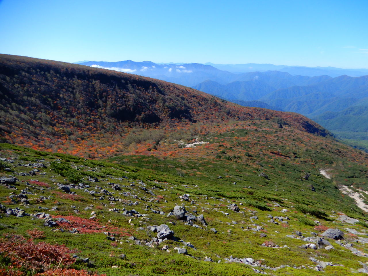 塩原温泉、今朝は晴れ。 今日明日とくもり時々晴れ。 まずまずの天気になりそうです。 さて、台風19号が来る直前、 紅葉を見るラストチャンスで、行って来た那須連山。 紅葉があまりきれいではなくて、 眺めの良いルートを選んで歩いてきました。 今日は朝日岳の裏側から、熊見曽根、1900m峰まで。 朝日岳って、手前から見ると、 ひたすらごつごつした岩がそそり立つ山ですが、 裏側から見ると全然表情が変わり、 何だかゴリラの後ろ姿みたいで笑えました。 その辺りから熊見曽根にかけてが、 一番紅葉きれいだったかも。 この後、紅葉は中腹へと下りてきているようです。 最後の写真は、1900m峰地点から見えた、その先の清水平。 できれば、そのまた先の三本槍岳まで行きたかったなあ。 ![]() ![]() ![]() ![]() ![]() ![]() ![]() ![]() ![]() ![]() ![]() ![]() ![]() ![]() ![]() ![]() 2019年10月19日 08:51