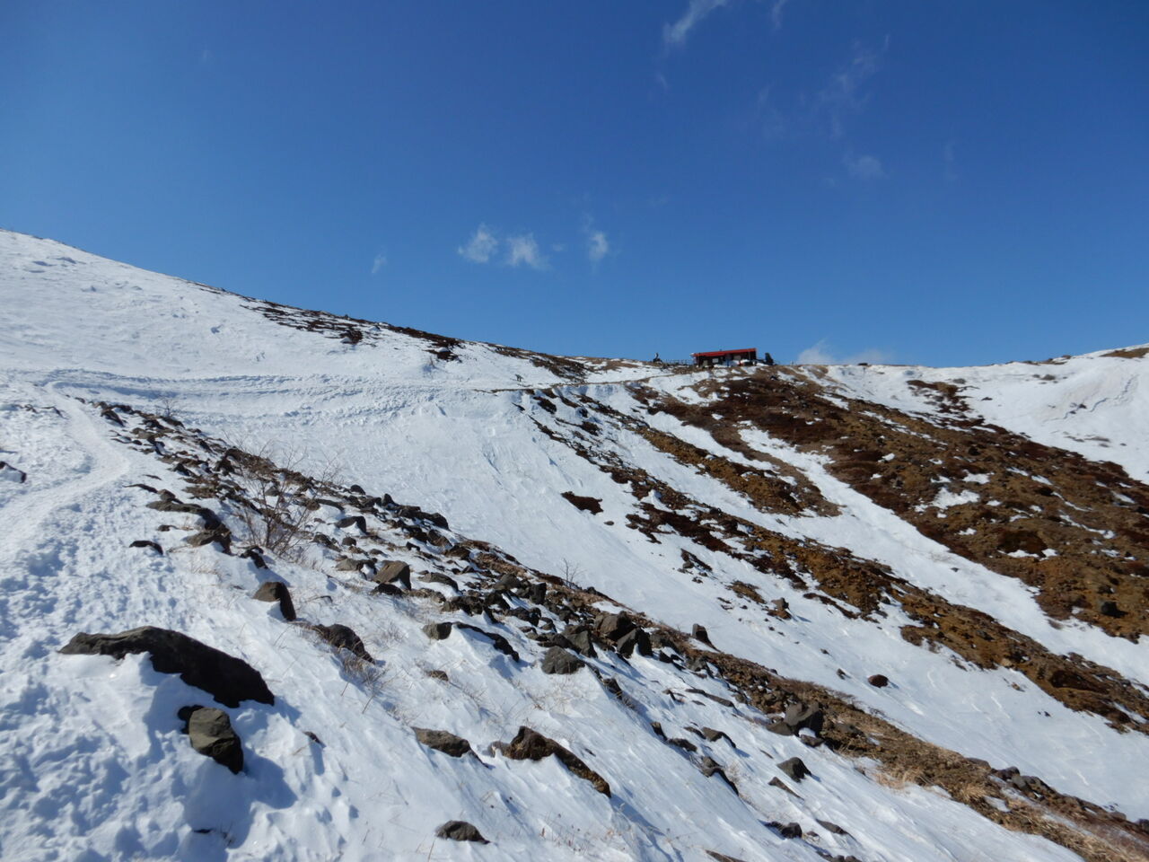 気持ちいい青空が広がっています。 風が少しあり、空気は冷たいです。 今日明日と一日晴れ。 その後、少しずつお天気下り坂になるようです。 さて、先日、2日続けての休館日の日、 日中、時間に余裕がありましたので、 那須方面と日光方面に出かけて、 それぞれの山の空気を少し吸ってきました。 秋以来となります。 那須は現在大丸までしか車が通行できません。 大丸に車を停めて、まずは那須ロープウェイ駅、 さらに登山口がある峠の茶屋までは歩かねばなりません。 ロープウェイ駅までは、道路の雪は除雪されていましたが、 その先、3メートルぐらいの雪の壁。 道路ではなく、やはり1〜2メートルの雪の遊歩道を歩きます。 峠の茶屋に到着したら、 いつも見てきたのとは全然違う風景。 道路がないのは当たり前ですが、 駐車場もすべて2メートルほどの雪。 昨年工事して新しく作っていたトイレの建物が 屋根の上まで雪に覆われていてびっくりでした。 いつもは見上げてくぐる鳥居も膝くらい。 鳥居の上が急斜面でちょっと難儀しました。 (下る時はお尻で滑ってきました・・・) 他の場所は、サクサクの雪で、 しかも沢山の方が踏み固めています。 アイゼンなしだったので、 行ける所までと思って登りましたが、 樹林帯を抜けたら、土が見えている所もあり、 峰の茶屋まで登ることができました。 往復3時間弱でした。 こんなに雪が残っている季節に登ったのは初めて。 峰の茶屋の裏側、 まだ真っ白な裏那須から 福島の山々を見られて嬉しかったです。 やっぱり山はいいなあ。 那須ロープウェイの運行が3/18(金)より始まります。 あさって3/14(月)には 那須ロープウェイまでの道路が通行可能に。 峠の茶屋までの道路の開通は3/30(水)12時です。 除雪が急ピッチで行われていました。 ロープウェイの運行が始まれば、 歩かなくても、こんな雪山絶景が見られます。 楽しみですね。 那須ロープウェイ駅手前。 那須ロープウェイ山頂駅が見えます。 ロープウェイの先。3メートルくらいの雪の壁でした。 道路ではなく、遊歩道がある所から登ります。 沢山の登山者が踏み固め、道に迷うことはないです。 もうすぐ峠の茶屋・・・ 道も駐車場も2mくらいの雪に 覆われていました。 茶店も屋根下まで雪。斜面にシュプール。 昨年作っていた新しいトイレの建物、 ほとんど雪の下に。 左側の庇がなかったら、 下に建物があるとは わからなかったです。 登山口のすぐ上の鳥居、膝ぐらいの高さに。 登山道ではない場所を 登っていきます。 この斜面が最も難所? 樹林帯の積雪も2mぐらいでしょうか。 いつもの登山道は もっと右側。 少し茶臼岳が見えてきました。 樹林帯を抜け、朝日岳も見えてきました。 雪の朝日岳、いい感じ。この斜面をピッケルで 登ってきたという方もいました。 樹林帯を抜けると広々してましたが、 いつもの登山道はどこだろう? 雪が融けて地面が見える部分が増えてきます。 いつもの岩がごつごつ。 峰の茶屋が見えてきました。 峰の茶屋到着。天気が良くて眺め最高。 茶臼岳。 剣が峰と後ろに朝日岳。 裏那須の山々。![]() 峰の茶屋の先、朝日岳までの間は 雪山トラバース。 私もいつか歩いてみたいです。 那須ロープウェイ駅周辺。急ピッチで除雪が 行われていました。 ![]() ![]() |