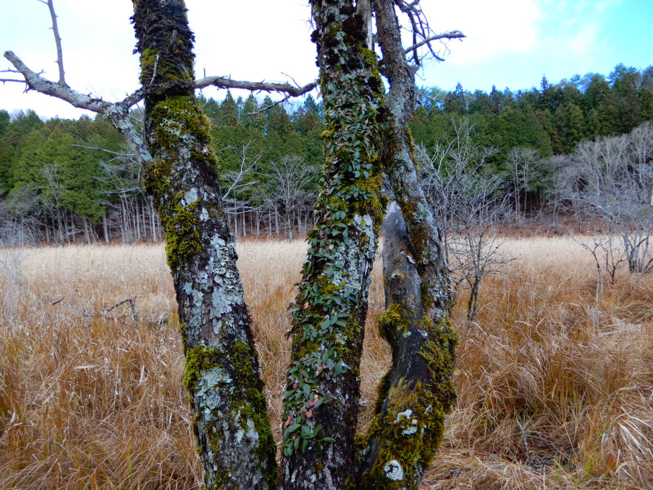 薄日が差しています。 昨日は雪が降りましたが、 特に積もるようなこともなく終わりました。 今日は一日くもりで一時だけ雪マーク。 そんな予報の日が続いています。 そろそろ冬用タイヤのほうが安心ですね。 さて、先日塩原温泉に大きな虹が出た日、 虹を追って行きついたのは大沼でした。 大沼からも虹が見えるかなと。 ところが虹も見えず、風景もすっかり寂しく・・・ それでもやっぱり大沼はすばらしい場所。 色々なものとの出会いがありました。 木々の葉が落ちると目に付くヤドリギ。 今年もいっぱい。 黄色の実と、 オレンジ色の実があります。 ![]() ![]() ![]() ![]() ![]() ヤドリギとカンボク。![]() カンボクとノイバラ。![]() 地衣類サルオガセの仲間。 オレンジダクリオキンかな。 イヌセンボンダケかな。 これは不明。 ツル性の植物。同定できず。 ![]() この場所には確かホコリダケがあった記憶。 ホコリダケの老菌でしょうか。 以前から気になるこれは何? 茸の仲間かな。 すごい数の魚。ギンブナでしょうか。 こんなにいていいのかどうか。。。 ![]() こんな季節にオタマジャクシの死骸が。 ちょっと不思議。 |