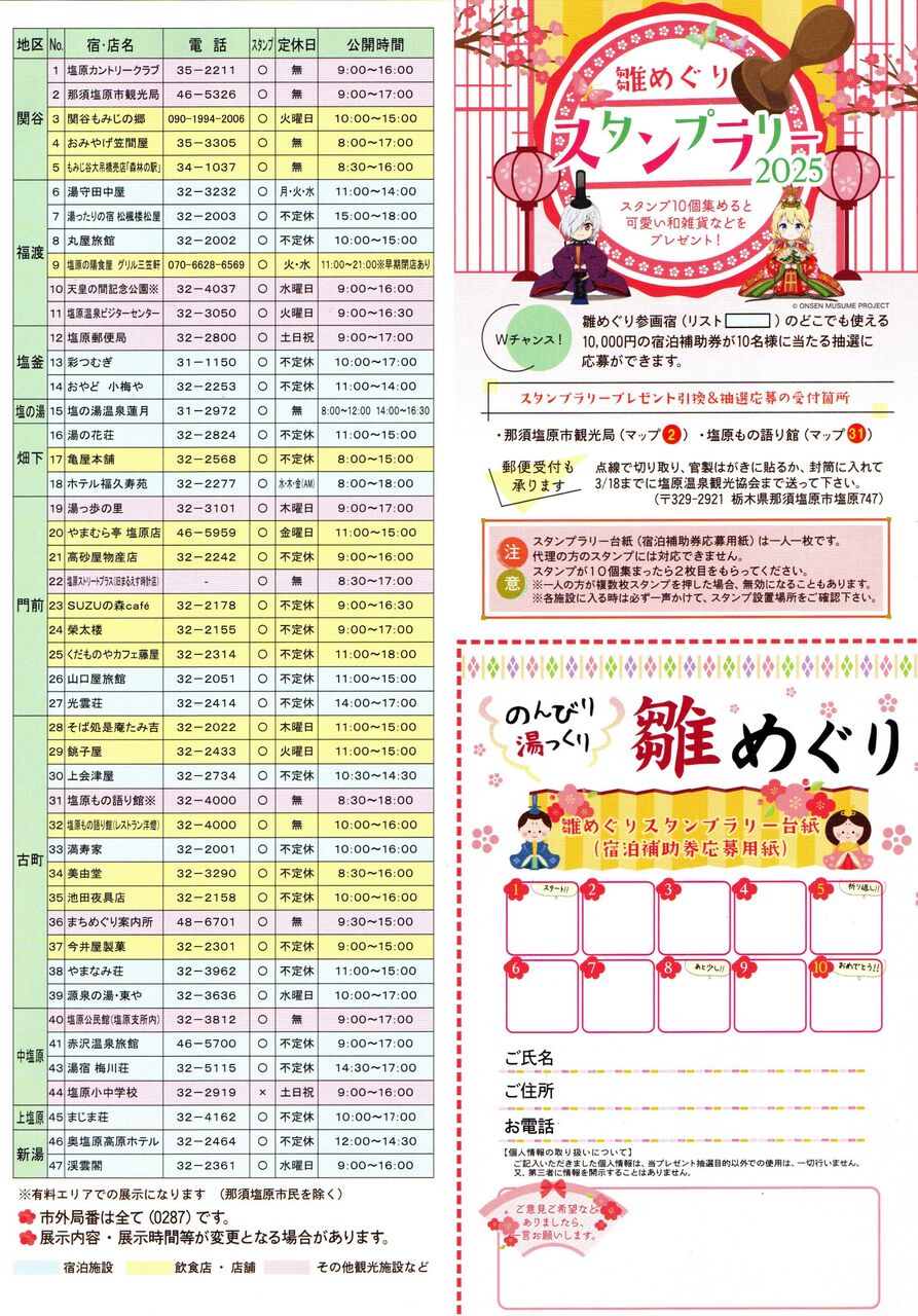 《塩原のんびり湯っくり雛めぐり》始まりました