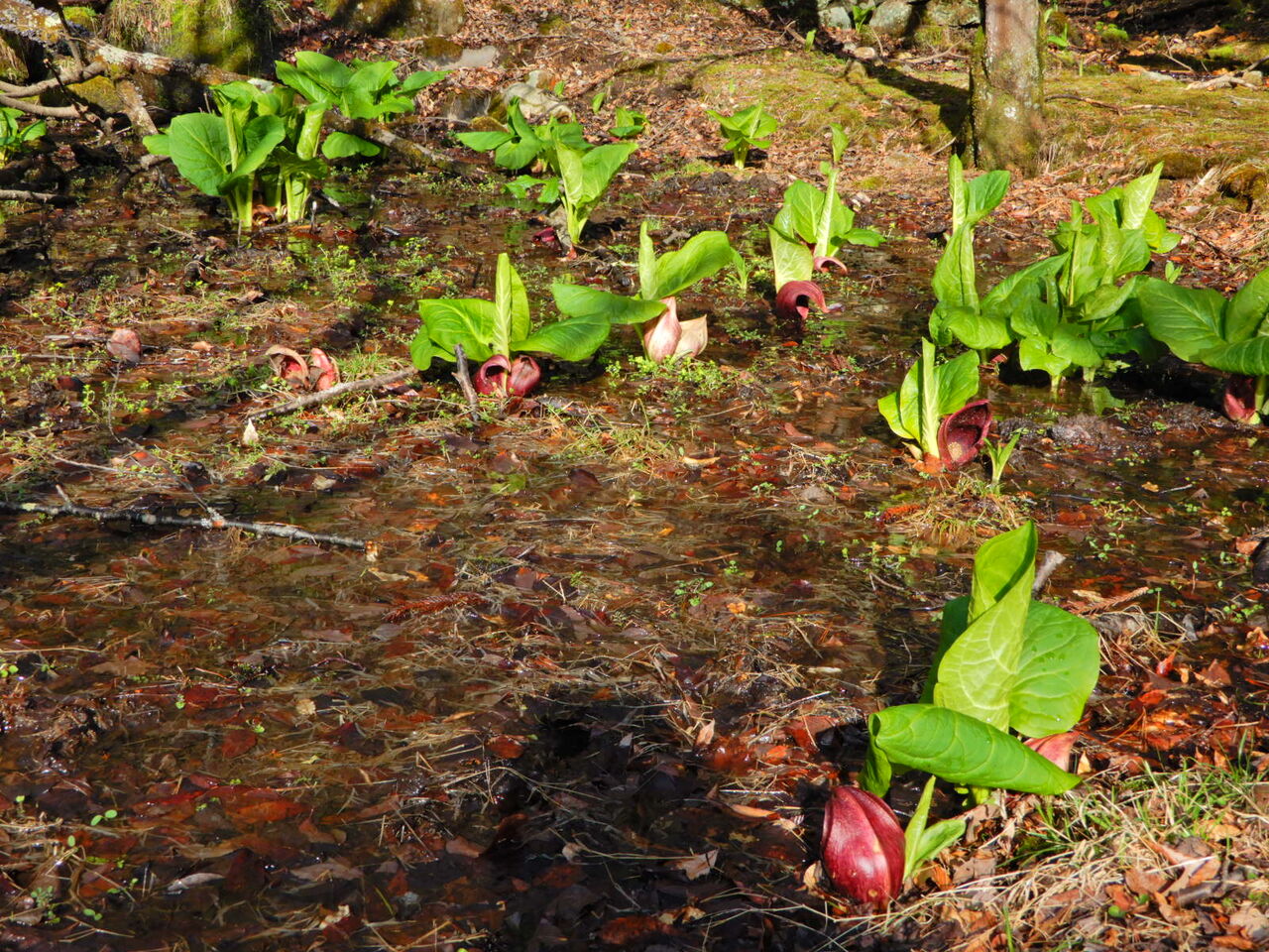 朝からお昼過ぎまで雨予報です。 気温もまた下がって寒めの朝。 気温の寒暖差が激しくて、 朝の洋服選びに迷いますね・・・ さて、ツツジや桜など、 穴場的な花名所でもある箱の森プレイパーク。 春一番にはザゼンソウも沢山咲いていました。 ザゼンソウはミズバショウと同じサトイモ科の花。 花は赤茶色の仏炎苞の中にある、 丸いこん棒のような肉穂の小さなつぶつぶ。 この肉穂が化学反応で熱を出し、 仏炎苞がその熱を内側にこもらせて、 周辺の雪どけを早めるらしいです。 自然の力ってすごい・・・ 仏炎苞は大体赤茶色ですが、 箱の森プレイパークには、 クリーム色やピンク色のものも。 かつて沢山見られたミズバショウは、 ほとんど姿を消してしまい、残念。 でもこれだけの数のザゼンソウに会えるのは とっても嬉しいですね。 この場所は夏には色々なトンボが飛び交います。 ![]() ![]() ![]() ![]() ![]() ![]() ![]() ![]() ![]() ![]() ![]() ![]() | ![]() |