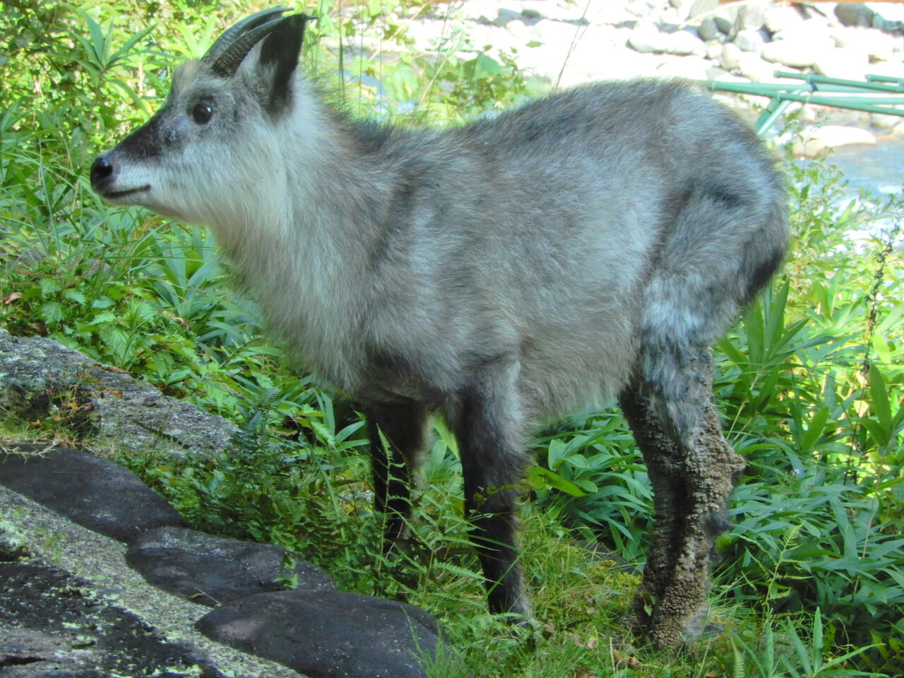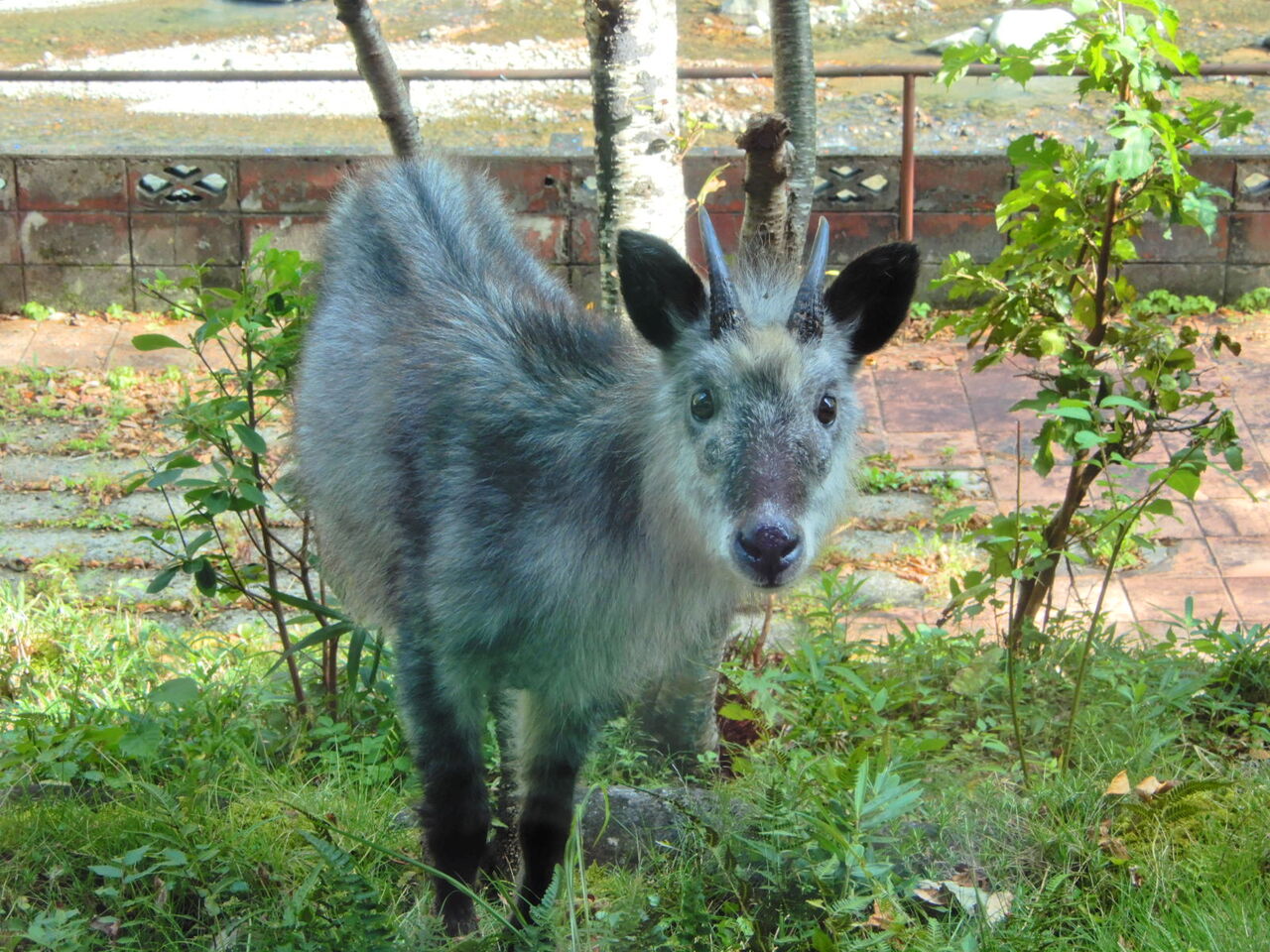 日中お天気はまずまず。 夜から少し下り坂で、 明日からは時折雨が降る時間がありそうです。 涼しくなってきて、ジャケット一枚羽織っています。 さて、昨日の昼間のこと。 突然、彩つむぎの敷地内に 国の天然記念物でもある ニホンカモシカが現れました。 ここ数年、見かけたことなかったので、 久しぶりのことにびっくり。 しかも、ラウンジダイニングの大きな窓の前に現れ、 私たちが窓越しにいて、 写真を撮ったりしていても、 全く動じることなく、数時間滞在。 周辺の草を食べていたようです。 確かにかわいいし、 お客様は大喜びだし、 草むしりの手間が省けて助かった・・・ と喜んではいられない(笑)。 まだ完全に大人になっていないような個体でした。 普段は山にいて、あまり姿を見せません。 民家まで降りてくるようなニホンカモシカは、 怪我をしていたり、病気だったりの可能性もあり、 今後も見かけるようなら、 担当部署に連絡しなくては、かもです。 さて、今日はどうなることでしょうか・・・ ![]() ![]() ![]() ![]() 追記・・・・・・・・・・・・・・・・・・・・・ この翌日、露天風呂周辺の白花ホトトギスが 何者かによってむしられて食べられていました。 昨日は早朝に写真と同じ場所、 夜に露天風呂の脇にいましたし、今朝も。 足しげく彩つむぎに来ているようです。 一体どこから来ているやら。 これからも遭遇する可能性ありそう。 遭っても襲ってきたりせず、 ただじっとしているだけなので、 大声を出したり追い払ったりせず、 そのまま後ずさりしてください。 ![]()