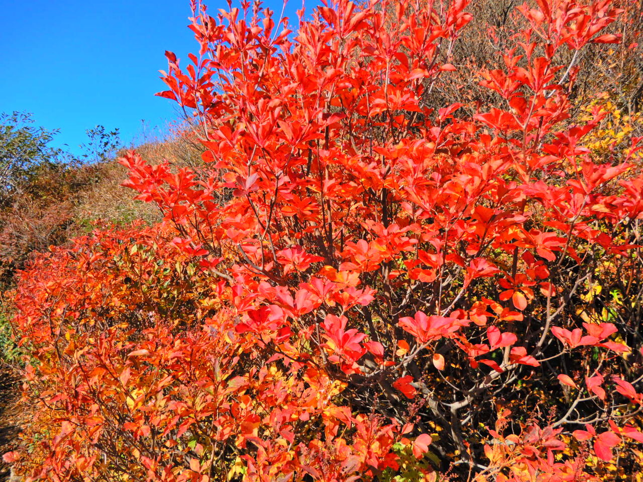 風があり、寒く感じます。 もうジャケットなしでは過ごせません。 季節の移ろいの早さに、まだついていけてないです。 さて、那須岳周辺の紅葉ピークです。 昨日の土曜日、 ロープウェイ周辺はかなりの渋滞があったようです。 お出かけの際には余裕を持ってお出かけ下さい。 午後行かれたほうが良いかもしれません。 さて、金曜日に行ってきた 那須岳周辺の紅葉。 今日は峰の茶屋から朝日岳方面に向かい、 恵比寿大黒という面白い形の岩があるポイントまで。 朝日岳に登ろうかとも思いましたが、 今年初めての、どちらかと言えばリハビリ登山。 風が強く前日雨だったので、 リスク回避で恵比寿大黒で引き返します。 じゃあ、何故恵比寿大黒まで行ったかと言えば、 峰の茶屋から恵比寿大黒の間の、 斜面側だけの樹林帯がとても好きだから。 短い距離の間に、色々な山野草がぎっしり。 思いがけない出会いがあったりします。 この日はホツツジなどツツジの紅葉がすばらしく、 青空と朝日岳や茶臼岳を背景に、 ツツジの紅葉の美しい写真が撮れました。 ![]() ![]() ![]() ![]() ![]() ![]() ![]() ![]() ![]() ![]() ![]() | ![]() |