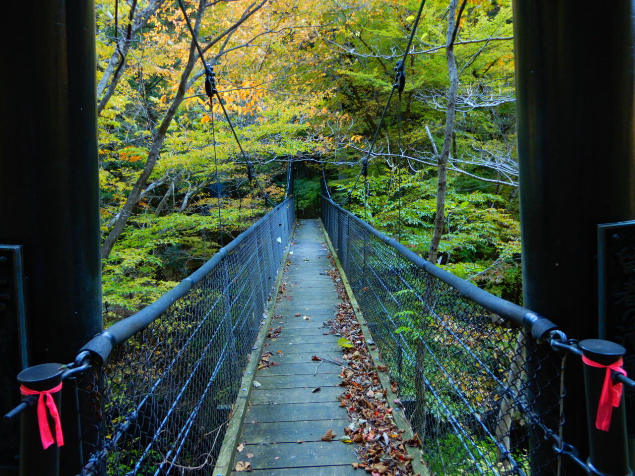 週末お天気良さそうですが、 その後週明けにちょっと崩れてきます。 火曜水曜とぐっと寒くなるようです。 来週塩原にお越しの方は真冬の服装でも良さそうです。 さて、塩原各所の紅葉がピークになっています。 毎日塩原各所の今年の紅葉の様子をお伝えしています。 今日は箒川ダムから少し下流、 留春(りゅうしゅん)の滝周辺です。 こちらも塩原街道旧道の途中から下りていきます。 階段数えたら、ちょうど200段くらいでした。 行きは良いけど帰りはちょっと辛いかな。 でも階段降りたら留春の吊橋と その奥に留春の滝が待っています。 上を見あげれば二つのトンネルをつなぐ、 留春大橋の大きな橋脚が。 なかなかの絶景です。 この辺りの入り組んだ渓を「潜竜峡」と呼ぶようです。 まさに竜が潜んでいるような迫力があります。 留春の吊橋から、 回顧(みかえり)の吊橋までが 塩原渓谷遊歩道「回顧コース」。 大体毎年歩いて尾根筋の紅葉を撮影に行くのですが、 今年は時間が取れず行かないで終わりそうです・・・ 遊歩道の脇にダイモンジソウがまだ咲いていました。 ![]() ![]() ![]() ![]() ![]() ![]() ![]() ![]() ![]() ![]() ![]() ![]() ![]() ![]() ![]() |