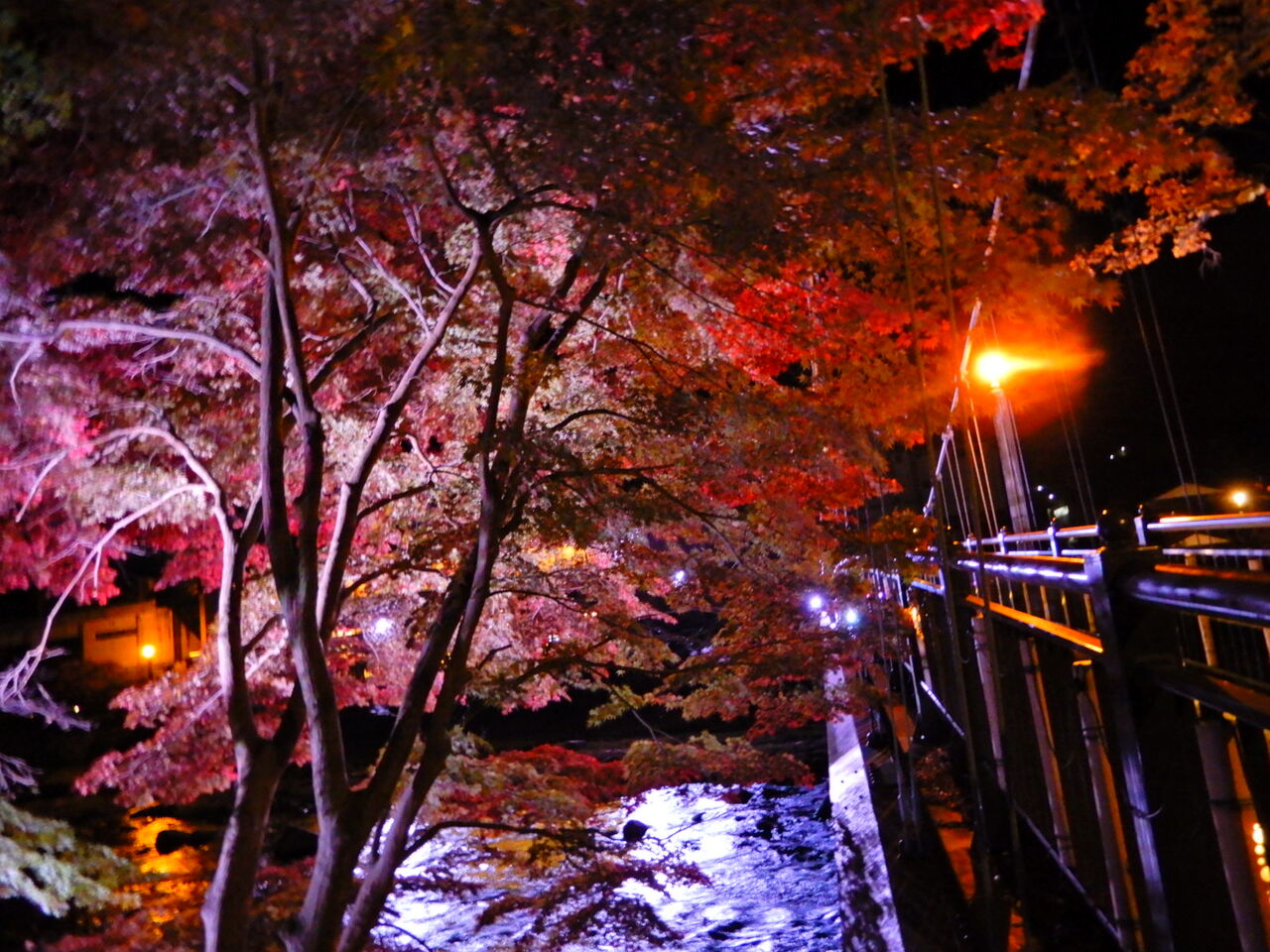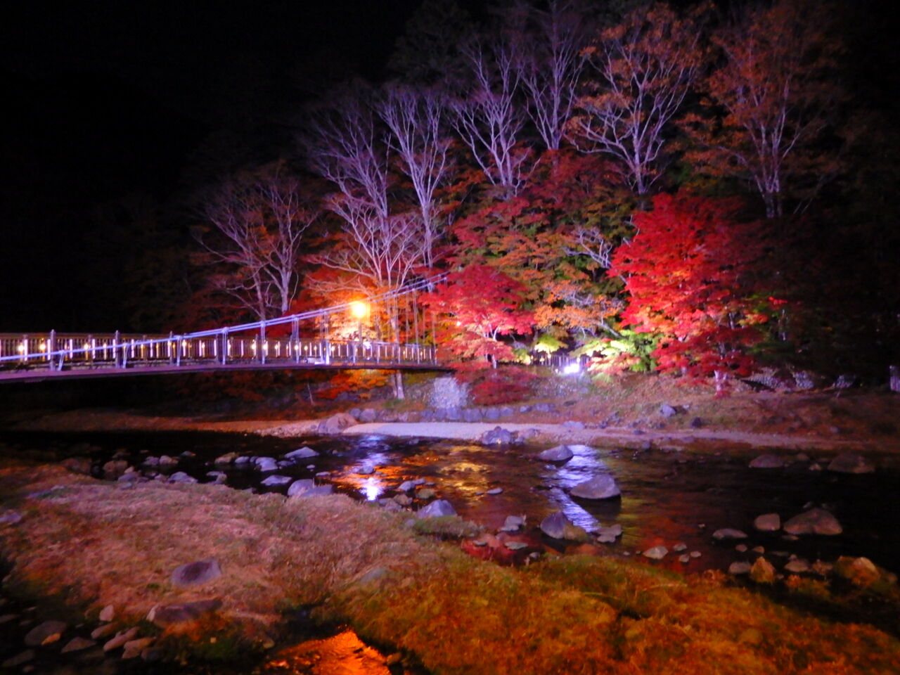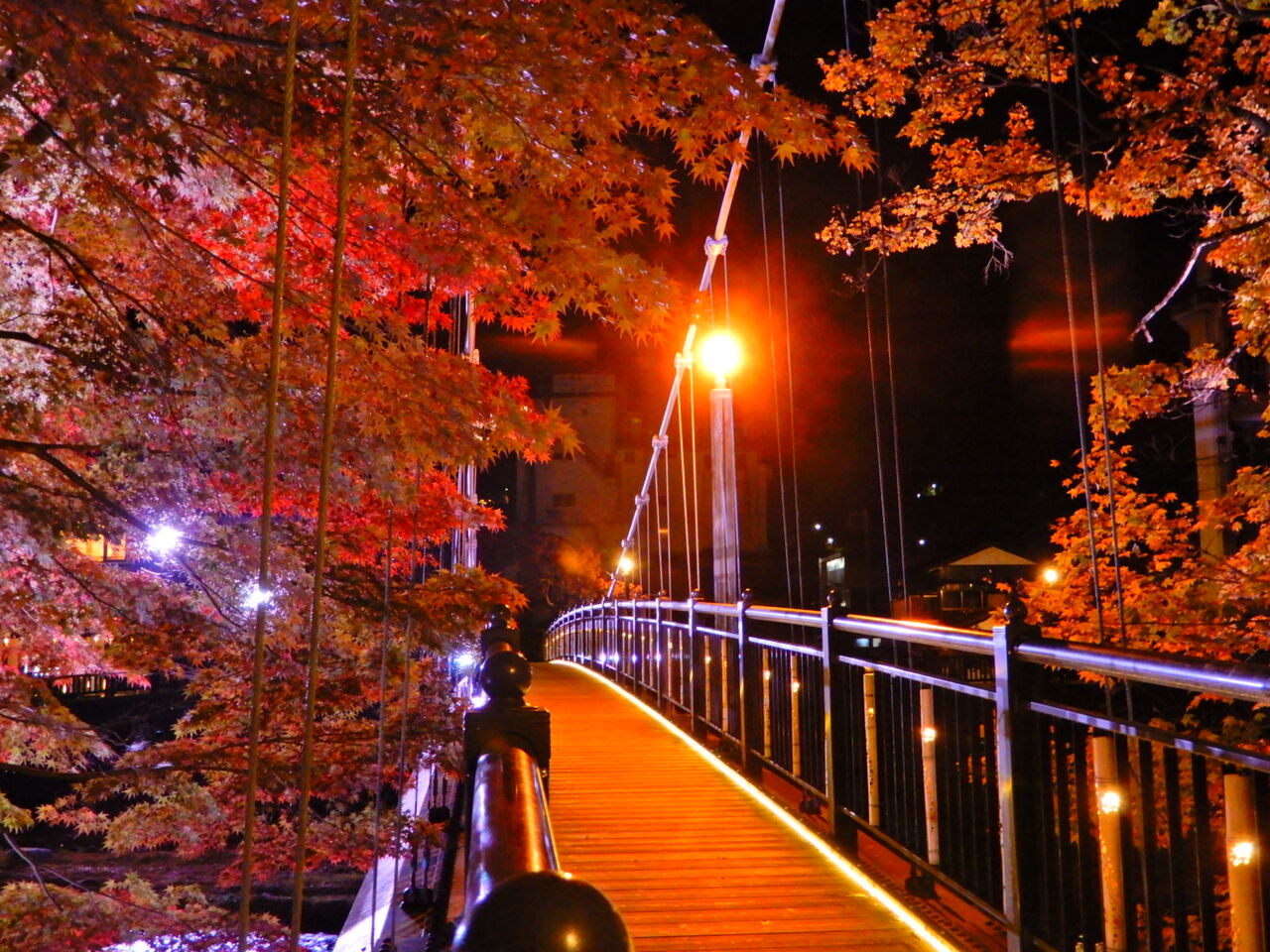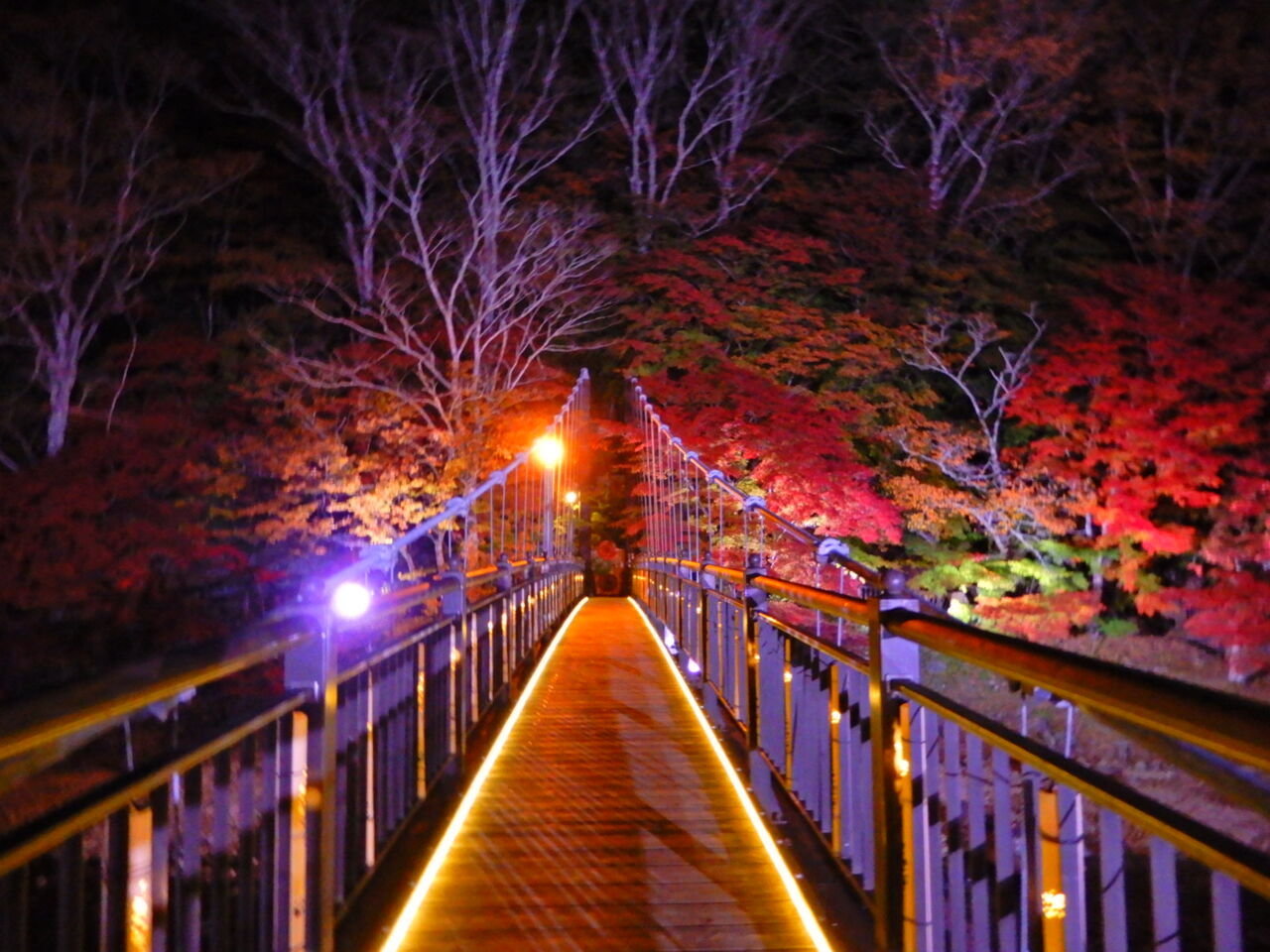 塩原紅葉2025(紅の吊橋夜のライトアップ)