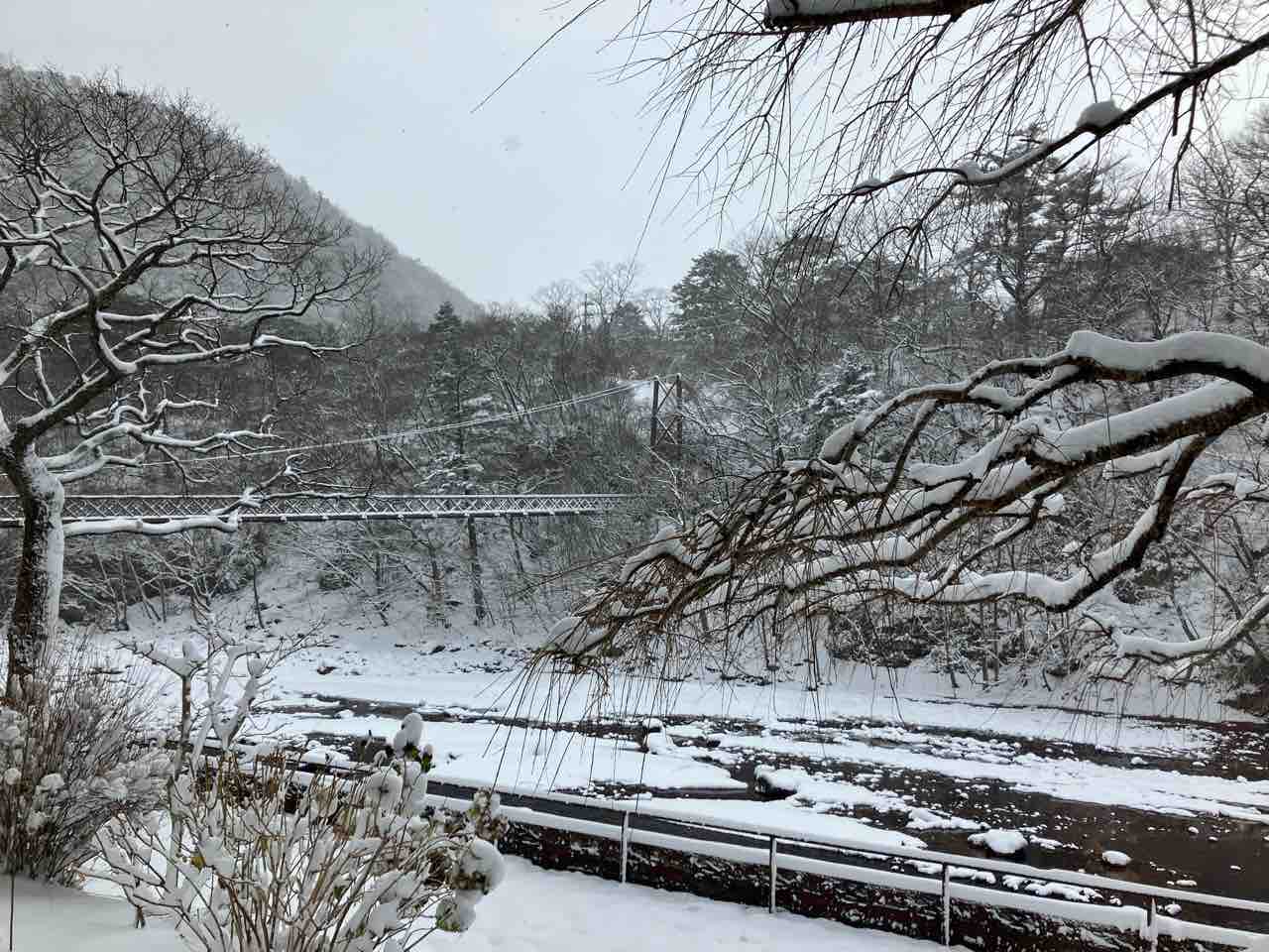 塩原温泉、今朝は・・・雪!