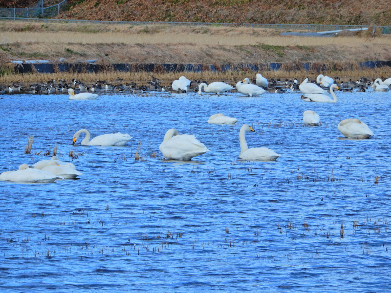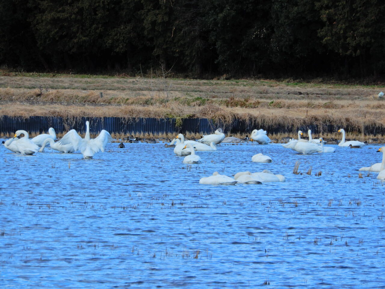 今日は一日晴れ予報です。 風もなく穏やか。 気温もまずまずです。 冬でもこんな日が続くといいですね。 この晴れの天気は明日の朝までで、 日曜には雨が降る時間もありますが、 気温は週末高めになります。 ちょっと寒さが緩んでほっとします。 さて、羽田沼には一羽もいなかった白鳥。 すでに来ていることは確かだったので、 どこか他の場所に行っているはず。 こういう場合、近隣の田んぼにいることが多いです。 特に冬水田んぼと言って、 冬にも水を張っている田んぼに。 羽田沼の近くにもそういう田んぼがあります。 そちらに回ってみたら・・・やはり。 沢山の白鳥がそちらにいました。 餌付けをしているようなので、 白鳥やオナガガモが来る場所。 餌付けには賛否両論ありますが、 遠くから見に行く人にとっては、 高い確率で見られるのは助かります。 かつて塩原でも水鳥に餌付けをしている方がいて、 冬には100羽近いオシドリが来ていましたが、 その方が塩原を離れてしまって10年くらいでしょうか。 今はもうオシドリの姿を見ることはありません。 先日もオシドリが見たくてと、 遠くからいらした方がいて、残念そうにお帰りに。 自然の生き物との共生はなかなか難しいものですね。 ![]() ![]() ![]() ![]() ![]() ![]() ![]() |