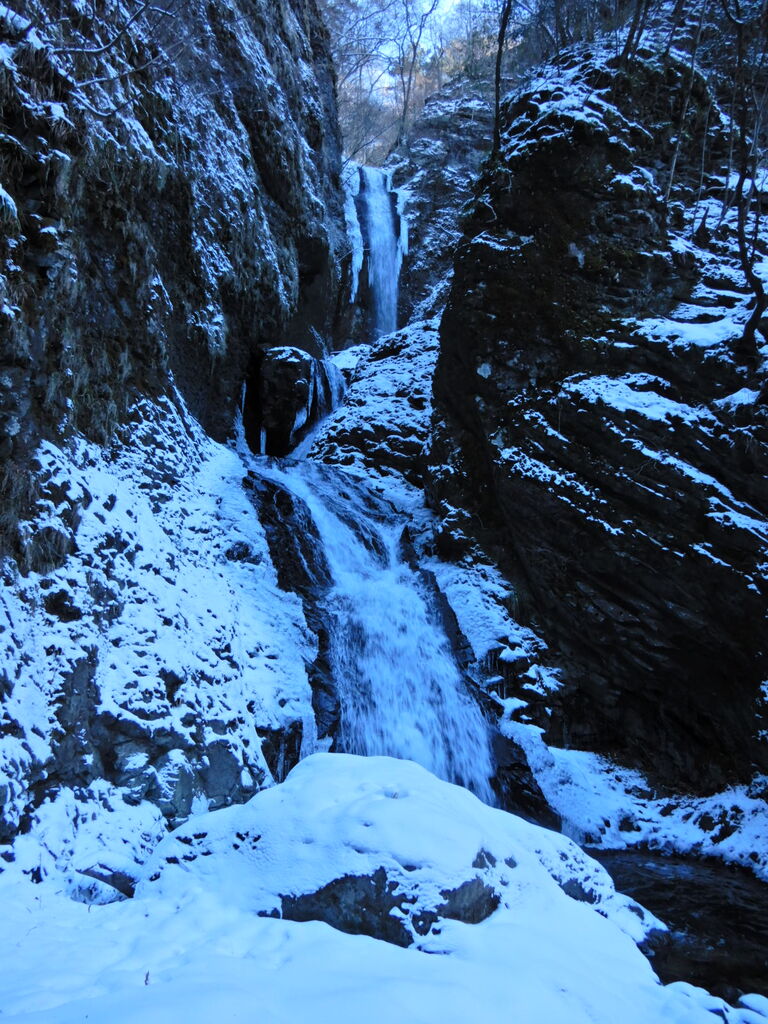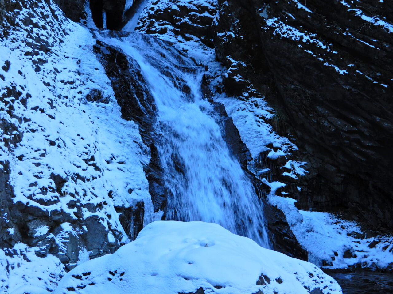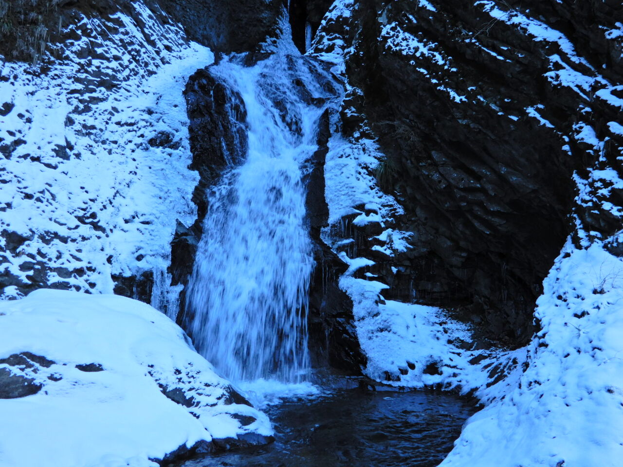 夜は雪でした。 朝になってみたら5センチくらいの積雪です。 軽いパウダースノーなので、 箒でささっと掃けるくらい。 大した手間もなく、雪かきできました。 ただ道路はまだ雪が残っていて圧雪状態です。 凍結している箇所もあり、運転にはご注意下さい。 この後は晴れてくるようです。 さて、大寒波襲来ということで、真冬の滝めぐり。 いつもと全然違う表情の滝が見られるので、 これはこれで毎年楽しみにしている景色です。 一番行きやすい竜化の滝。 一カ所で4つの滝が見られる場所。 今日からそれぞれの滝をご紹介していきます。 最初に竜化の滝。 一番奥にある最終ポイントです。 観瀑台手前はまだ雪がかなりありますので、 ここまで行くにはスノーブーツや長靴で。 冬でも全凍結はしませんので、迫力満点でした。 三段の滝ですが、 特に一番上の部分はアップにして撮影したら まるで日本画のようでした。 ちょっと苦労してでも見に行く価値ある、 真冬の竜化の滝です。 ![]() ![]() ![]() ![]() ![]() ![]() ![]() |