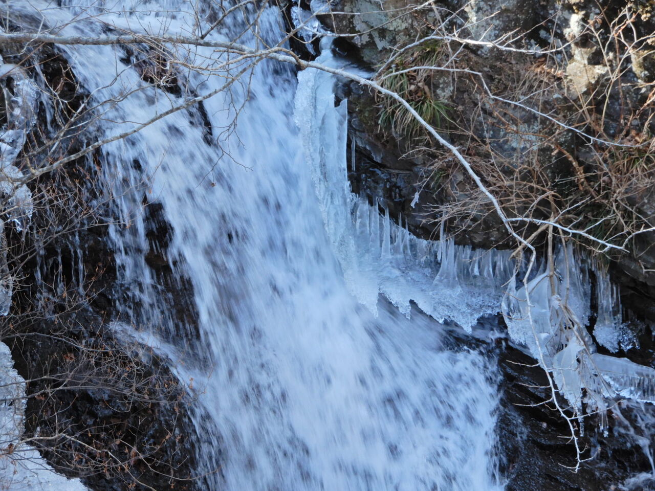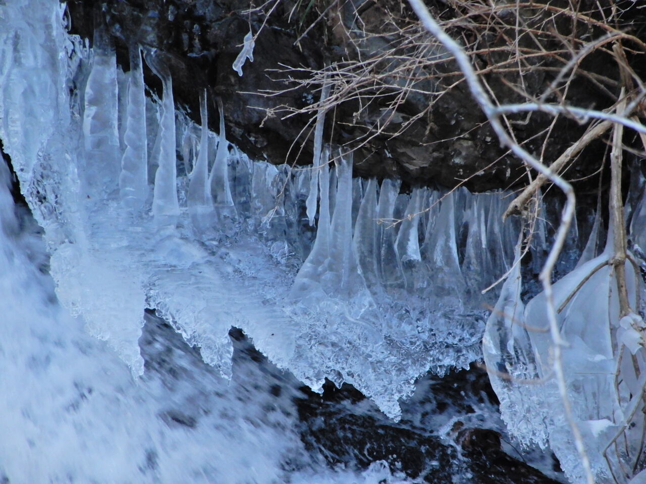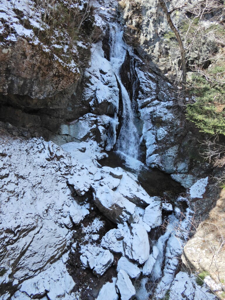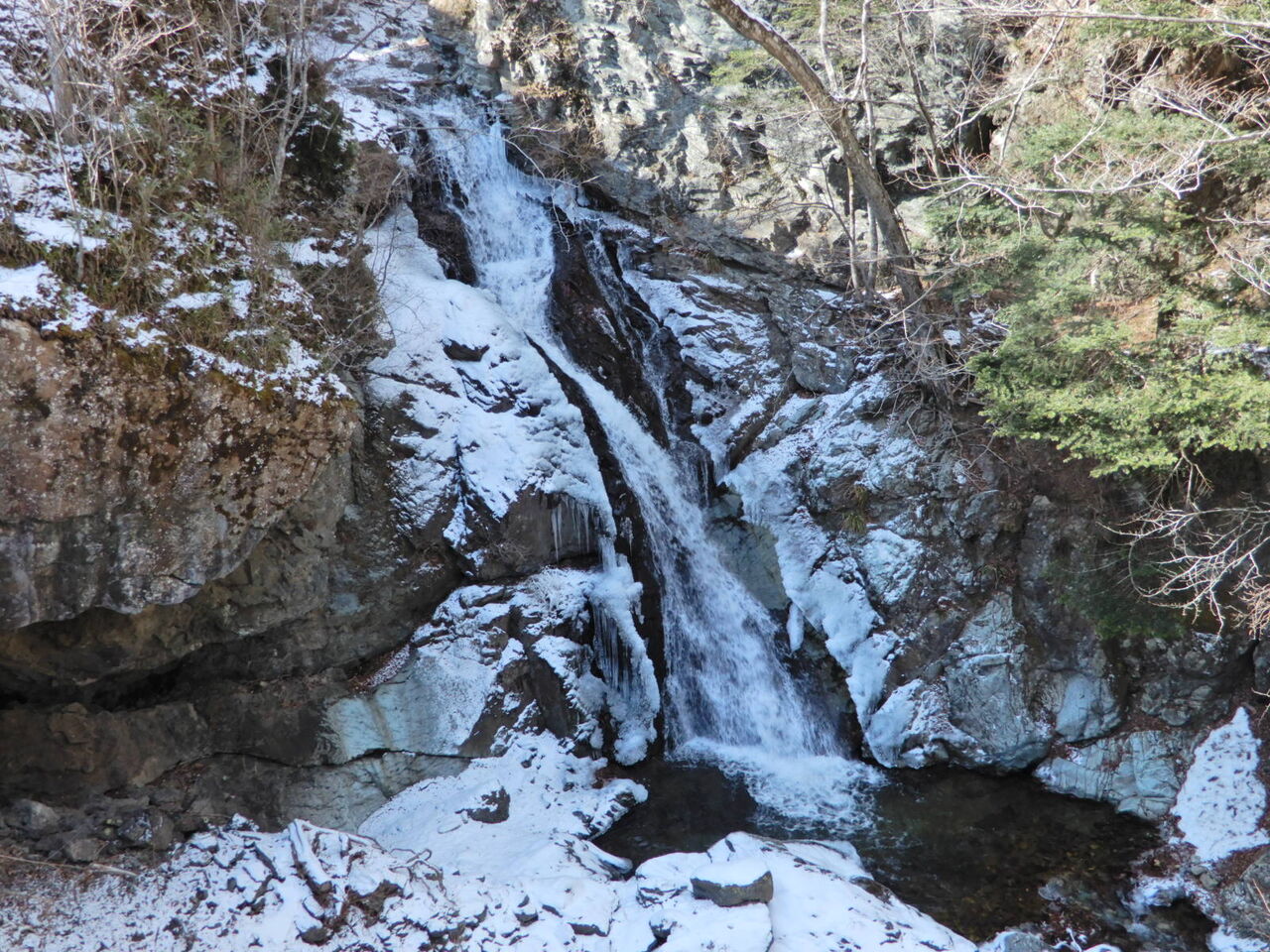少し薄日が射しています。 今日はこの後、 午後から明朝にかけて晴れ予報。 ただ風が出てくるようなので、気温は上がりません。 夜中から明け方にかけてはかなり冷え込みそうです。 大寒波は緩んだとのことですが、 まだまだ寒い日が続きます。 さて、そんな寒い中に行く冬の滝めぐり。 今日は抛雪(ほうせつ)の滝を。 「抛」という字はなかなか変換されないのですが、 「放」とほぼ同じ意味を持つ漢字です。 「雪」を「投げた」ような滝ということでしょうか。 竜化の滝に行く遊歩道の途中、 竜化の吊橋の手前に滝の落ち口が見えます。 以前は滝の全容が手前の木々によって よく見えなかったのですが、 ふるさと納税の寄付などによって、 那須塩原市と観光協会の協力で修景伐採が行われ、 現在滝の全容が道路からも見えるようになっています。 いわば、道路から、車の中からも見える滝。 遊歩道の橋の下から落ちて、 やはり道路(塩原街道旧道)の橋の下を通って、 箒川に流れこんでいます。 滝の周辺、けっこう凍結しています。 こういう風景が楽しめるが冬の滝めぐりです。 ![]() ![]() ![]() ![]() ![]() ![]() ![]() |