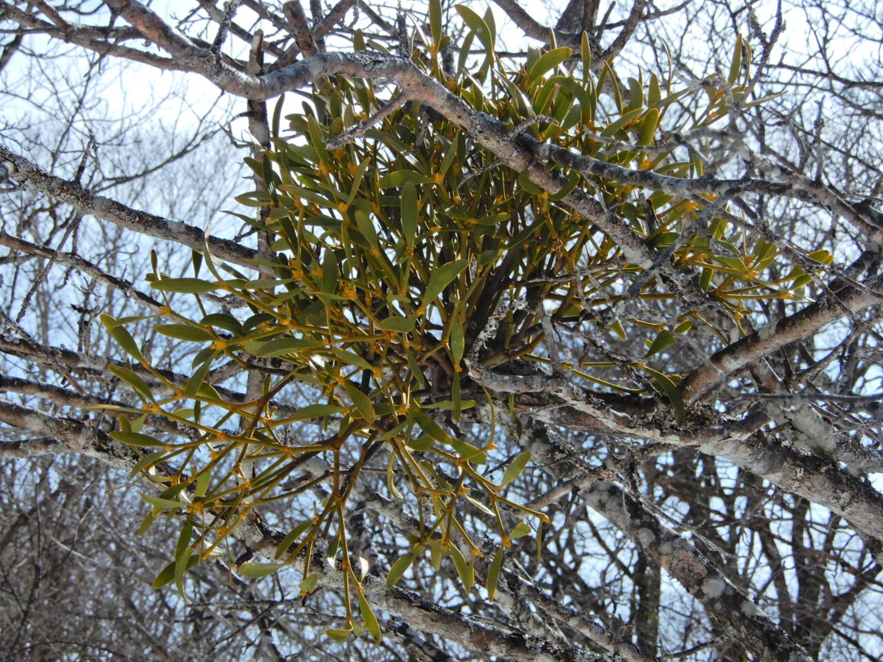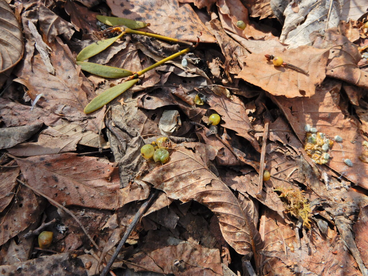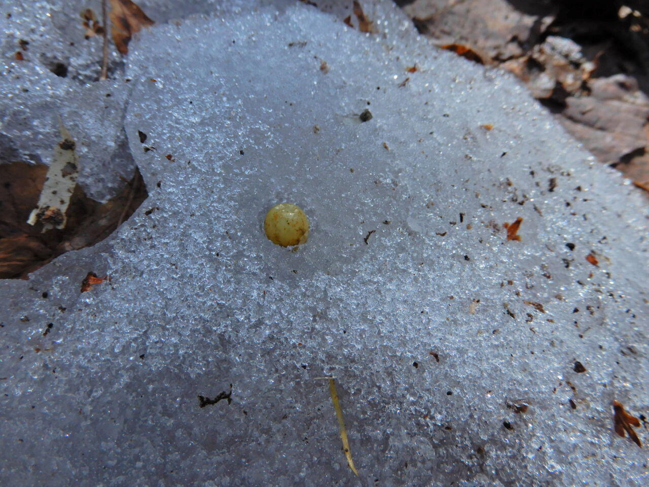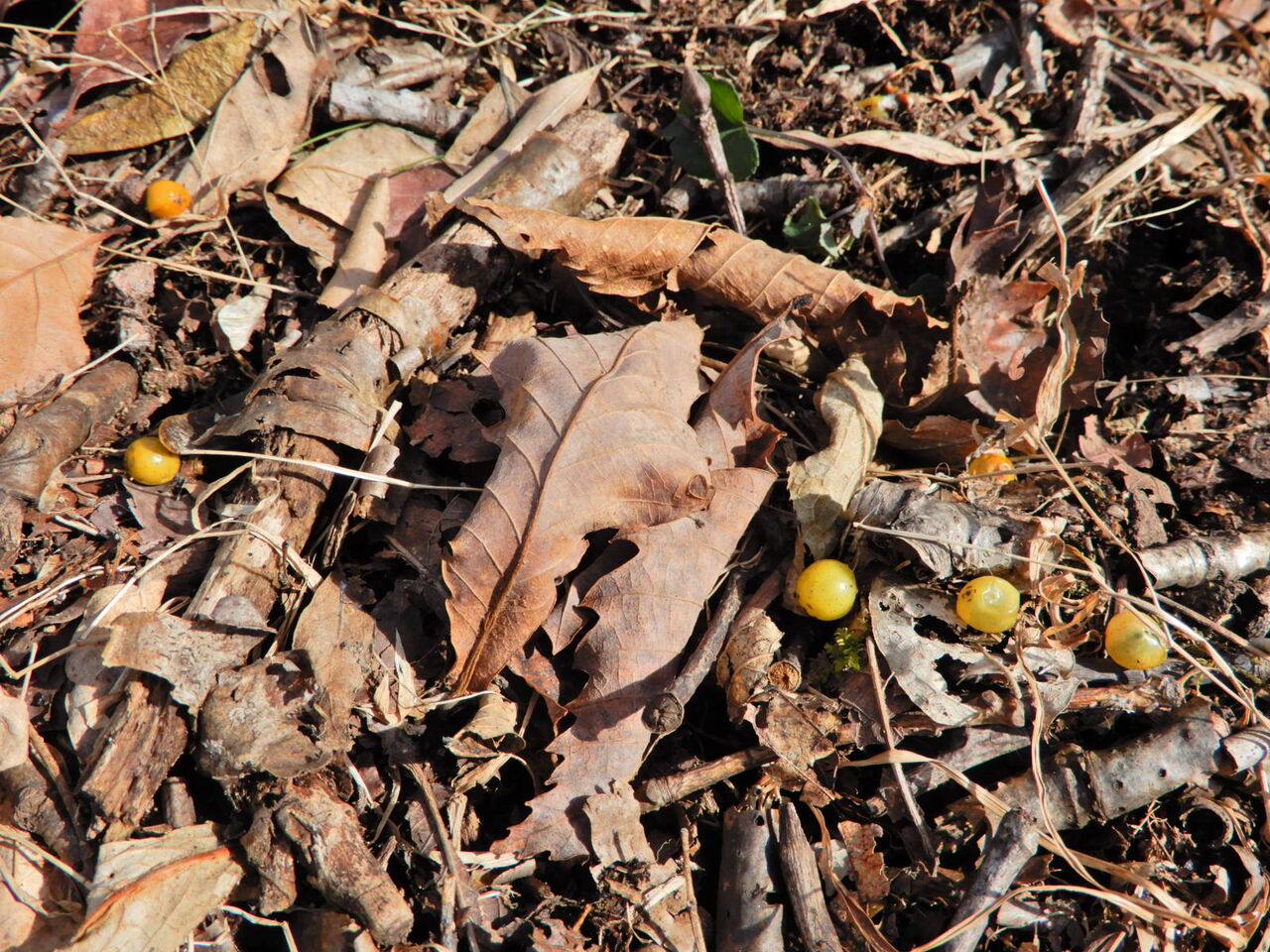 雪どけの塩原大沼公園(ヤドリギの実)