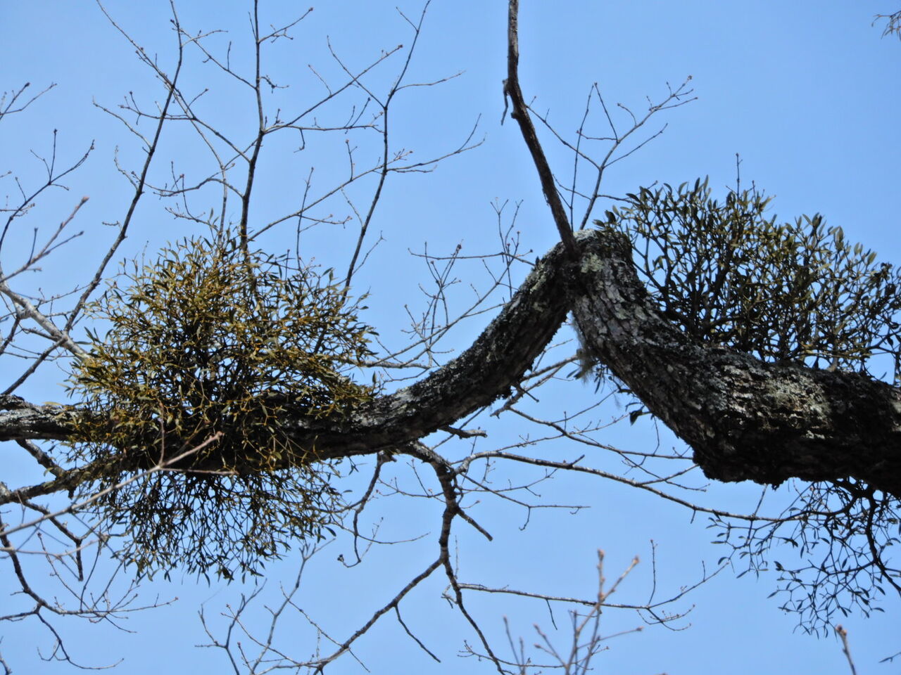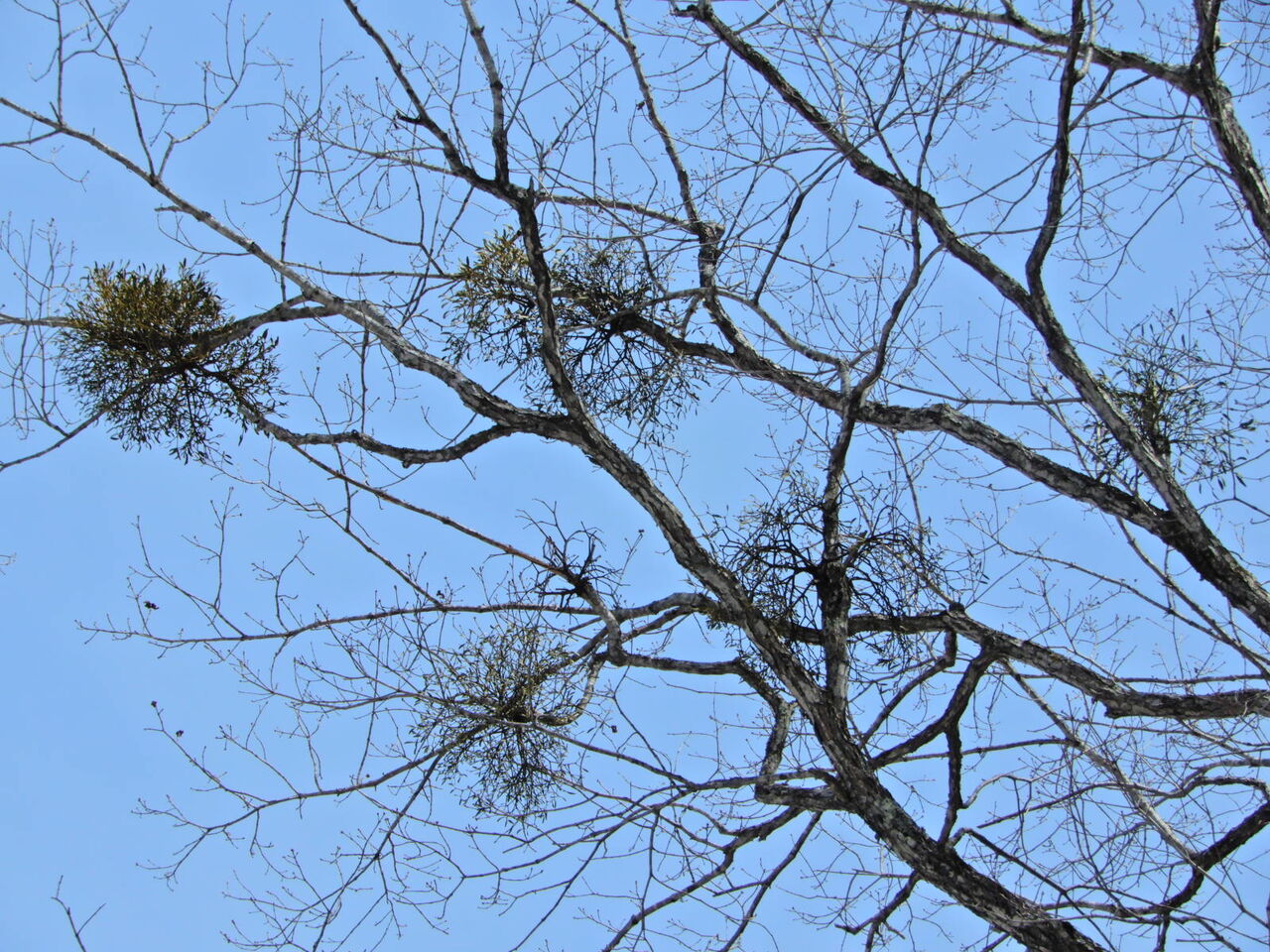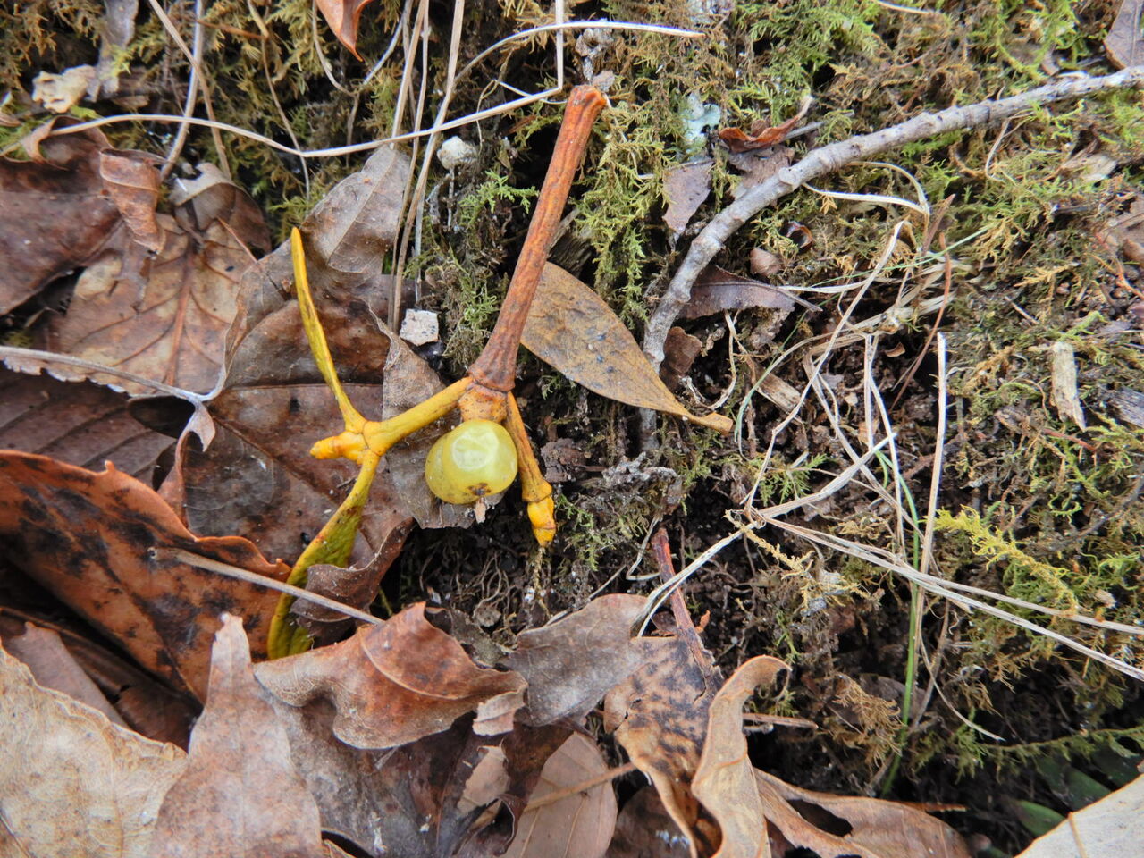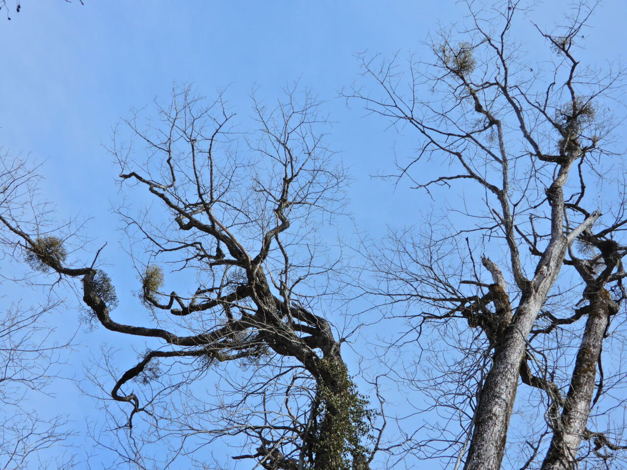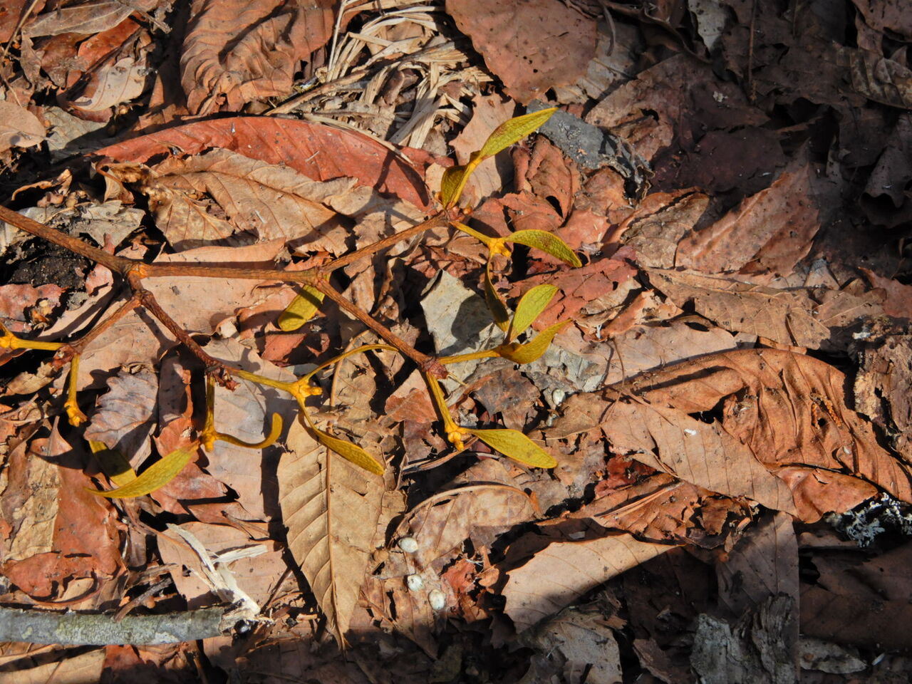 雪どけの塩原大沼公園(ヤドリギの実)