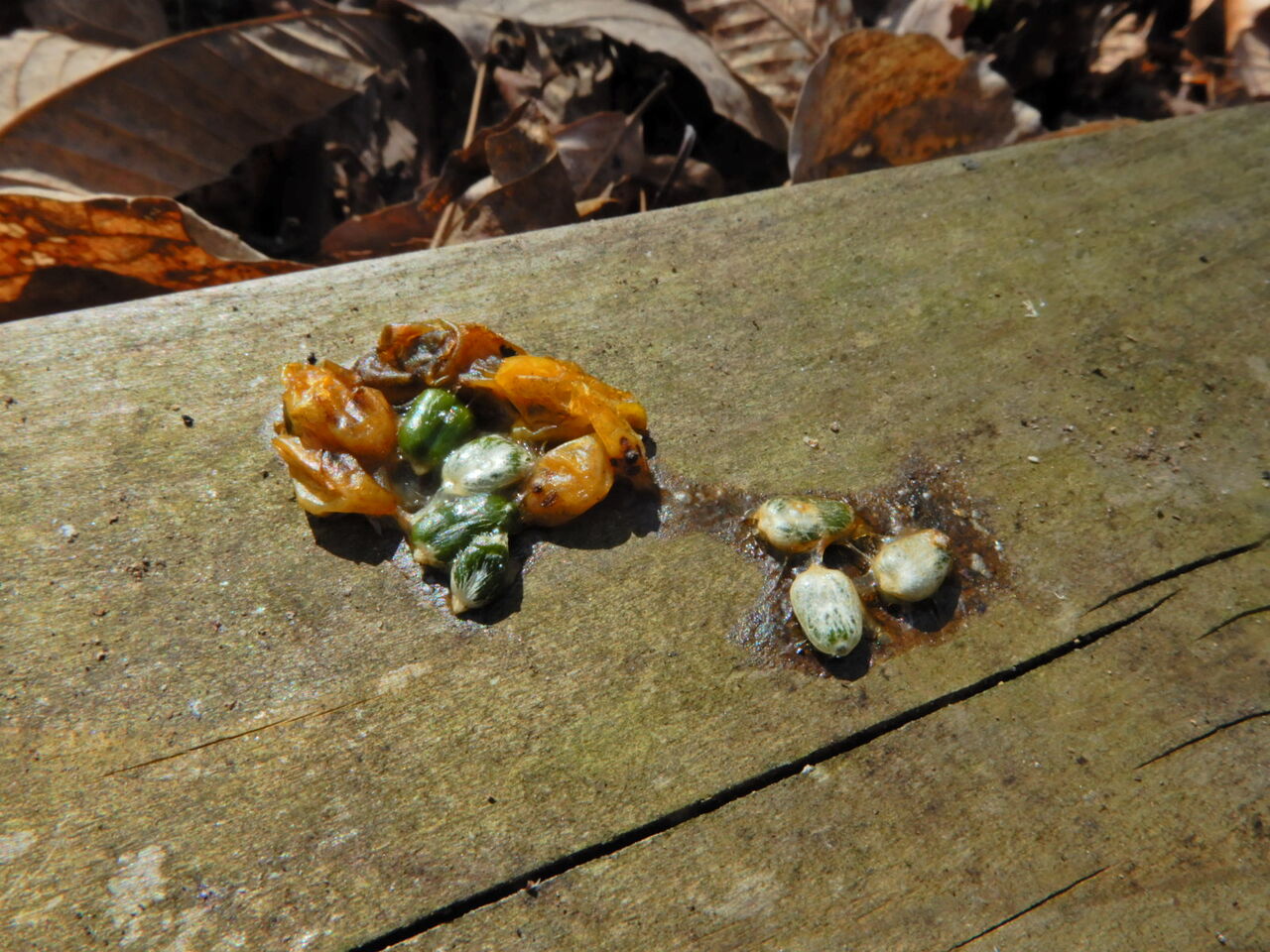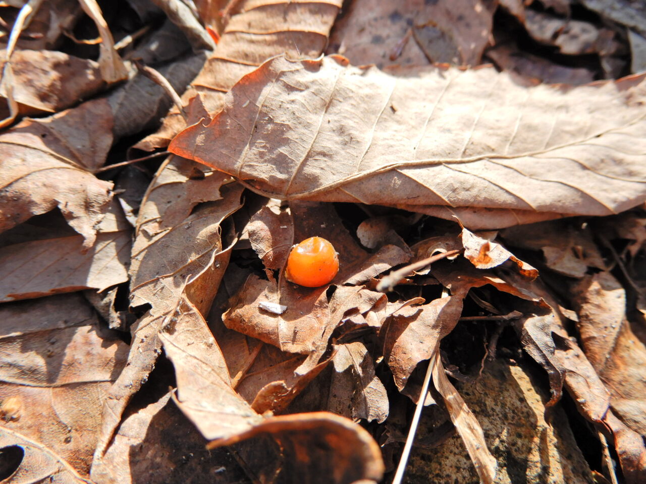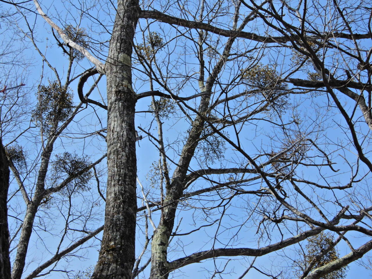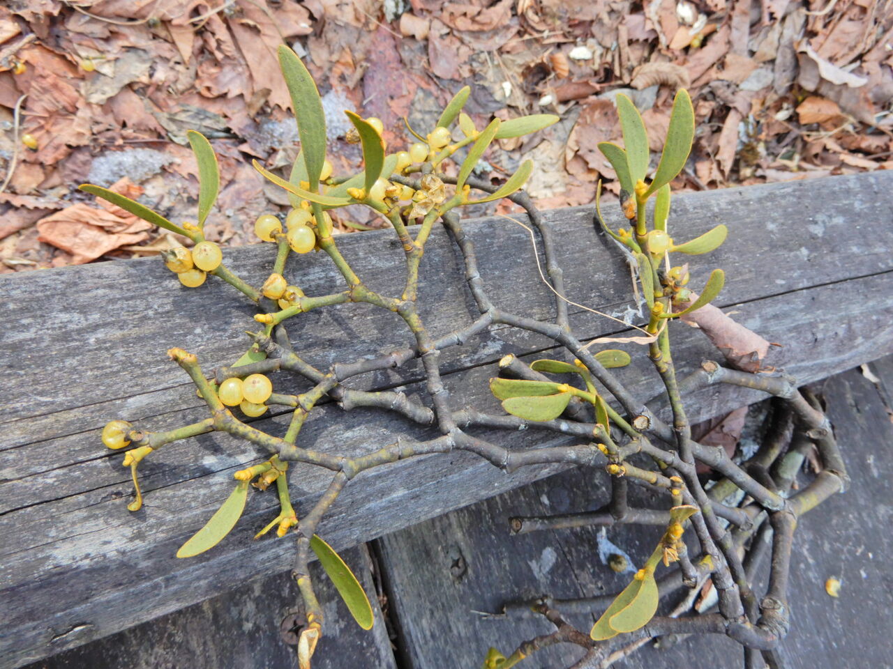 雪どけの塩原大沼公園(ヤドリギの実)