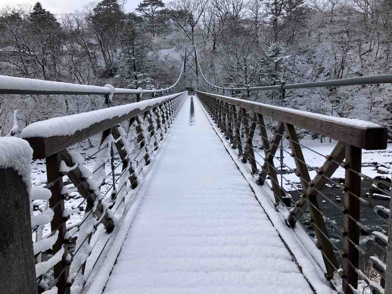 一面の雪景色です。 また驚かされました。 昨夜日付変わる頃は、全く雪降ってなかったのに、 朝起きたら真っ白な雪景色。 10センチ弱の積雪でしょうか。 予報でも夜中に数時間の雪予報はあったものの、 数時間だし、もう3月だし、 積もるほどの雪ではないだろうと高をくくってました。 この冬はこういう一晩で一面真っ白というのが多いですね。 ともあれ、とてもきれいな雪景色が広がっています。 お隣の七ツ岩吊橋からの雪景色を撮影しようとしたら、 吊橋、まだ誰も渡っていなかったので、 その風景を私の足跡で壊すのももったいないと、 橋を渡らずに、手前から撮ってきました。 先日咲き始めたマンサクの花が雪をかぶって寒そうでした。 この後晴れてくるようですから、 いつまでこの景色が見られるかな。 あっ、道路の雪はすでに融けてます。 ![]() ![]() ![]() ![]() ![]() ![]() ![]() ![]() ![]() ![]() ![]() ![]() ![]() ![]() |