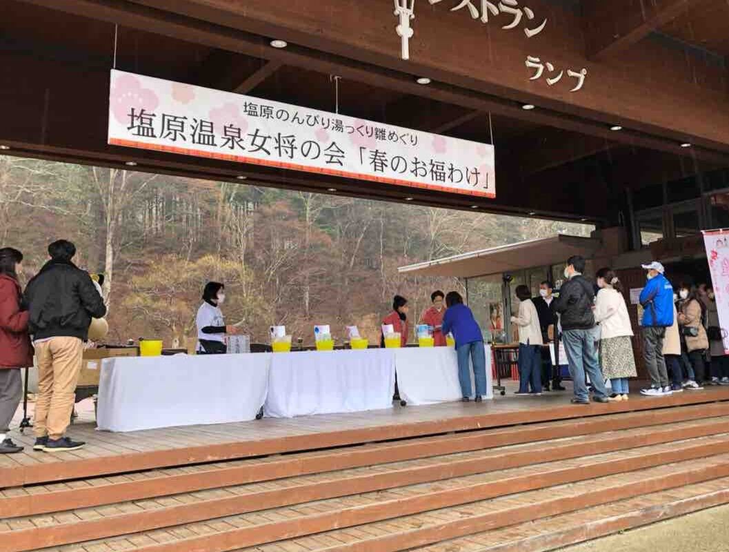 真っ青な空が広がっています。 一昨夜に降った雪もほとんど融けています。 しばらくずっと晴れの天気が続きますが、 なぜか気温は上がらず低め。 まだまだ冬の服が片付けられません。 それでも少しずつ春が近づいています。 そんな3月。 今週末の日曜日には 《塩原のんびり湯っくり雛めぐり》の最終日。 塩原温泉女将の会による『春のお福わけ』を開催。 雛めぐりの最終日に、 当初は「がらまき」を行っていましたが、 コロナ禍だったり、 固いお餅がぶつかると痛かったり、 拾う人がぶつかったりして危険だったりと、 諸々の理由から現在は「がらポン」抽選会になっています。 10時半より、塩原もの語り館にて、 先着100名様に整理券をお配りします。 抽選会は11時より。 一等賞は塩原温泉の宿に泊まれる10000円の宿泊補助券。 2等以下は、那須塩原市観光局から提供されたグッズや、 温泉饅頭詰め合わせセットなどなど。 何が当たるかお楽しみ。 当初は1等賞は1本だったのですが、 その1等が最初のほうに出てしまうという年があり、 その後は1等賞は2本に増やしました。 全員の方に、紅白餅他もお配りします。 色々な「福」を是非持ち帰って下さいね。 当日は塩原もの語り館内において、お琴の演奏もありますよ。 ![]() |