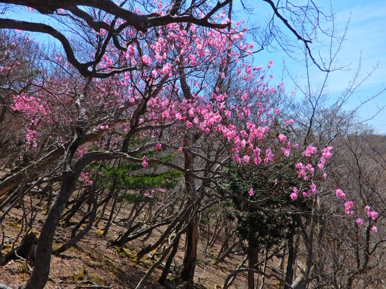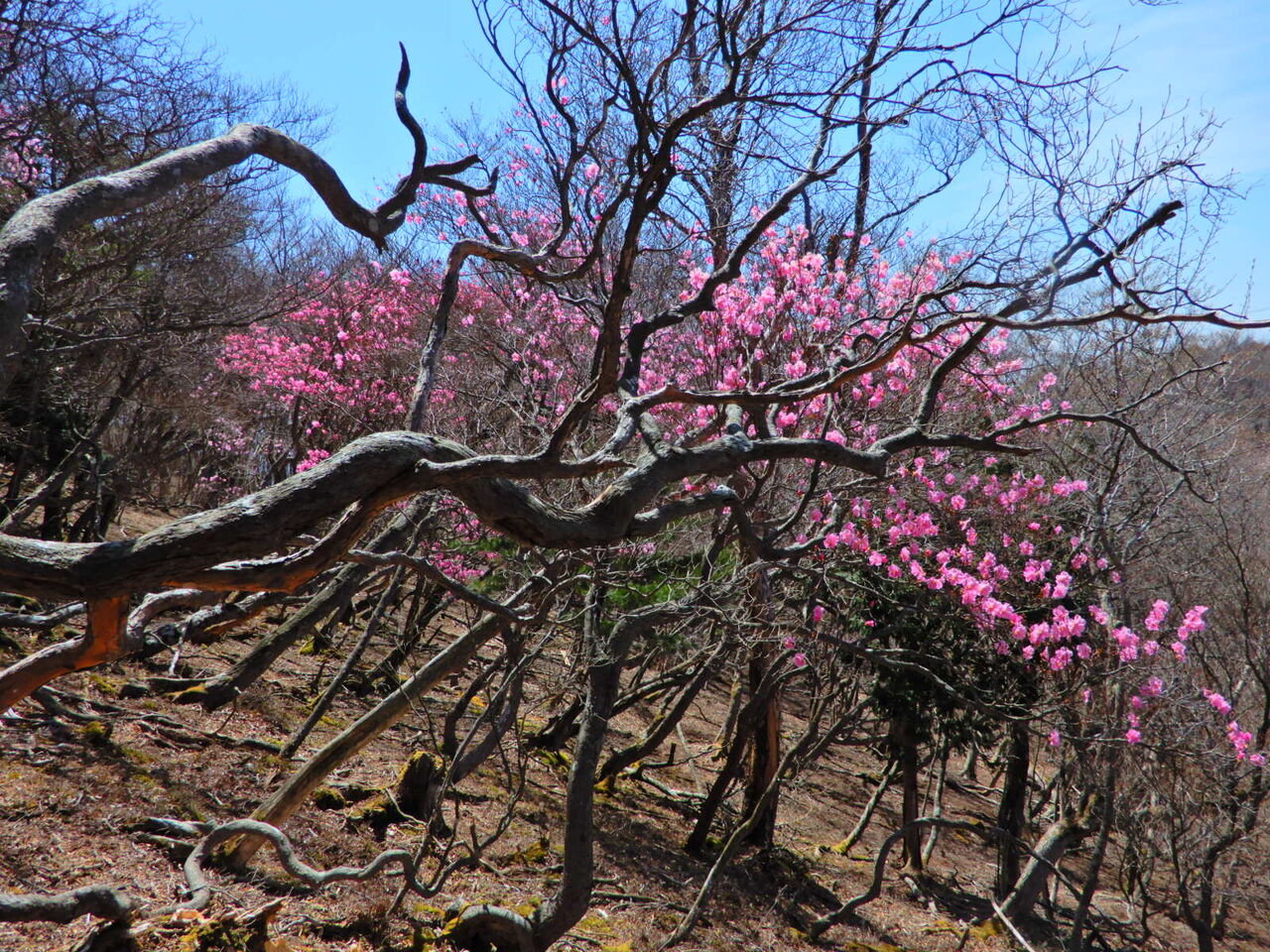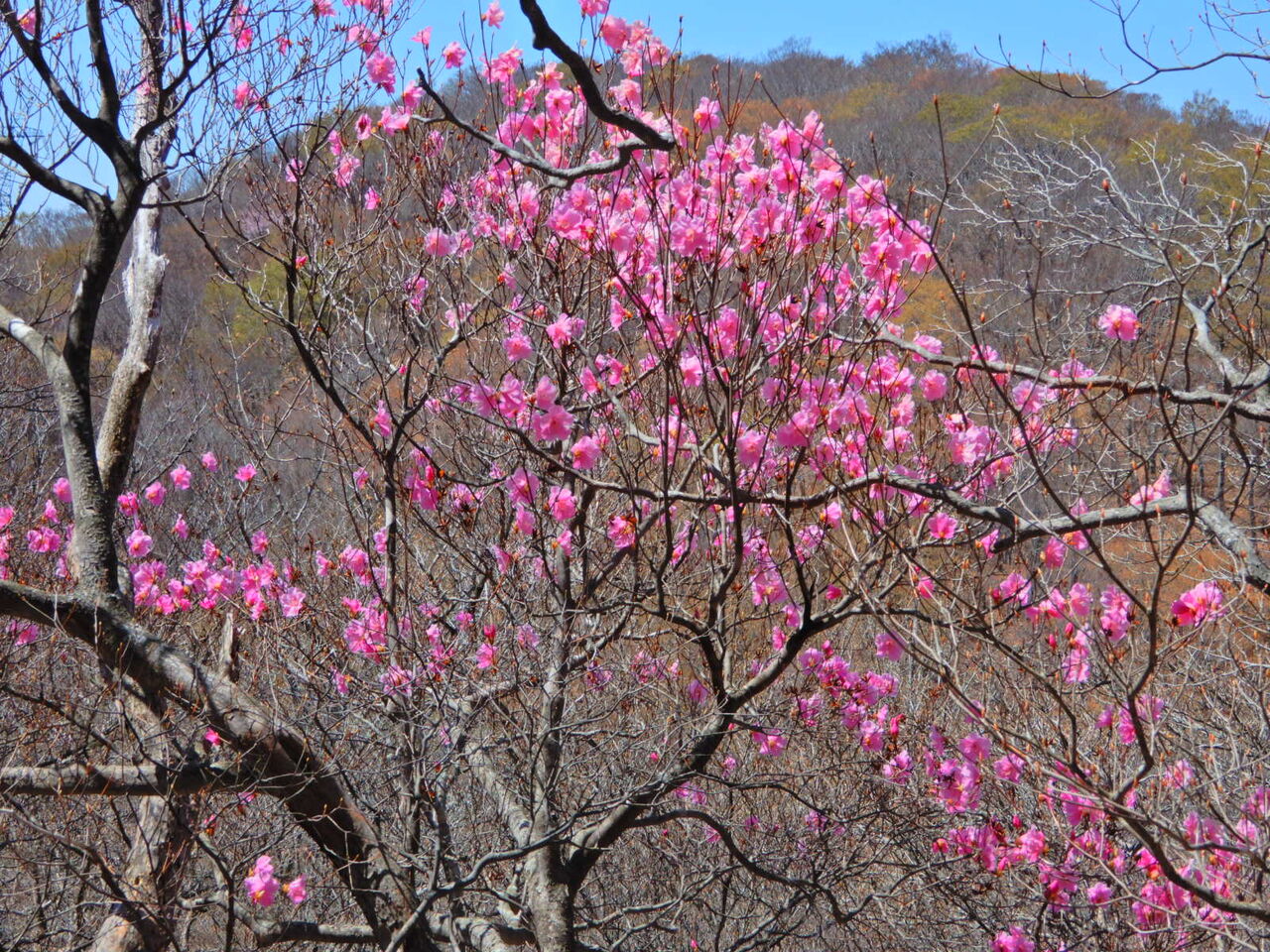 つい少し前までは暑かったので、 寒く感じる朝です。 今日明日とずっとくもり予報。 そして明後日5/1は雨予報になっています。 気温もしばらく低め。 塩原ではまだフリースジャケットが手放せません。 さて、八方ヶ原ミツモチ山の 絶景ヤシオツツジを見てしまったら、 他の山のヤシオツツジも気になる気になる。 今年はなかなか時間が取れずジレンマなのですが、 とりあえず、急ぎ地元塩原弥太郎山へ。 塩原弥太郎山周辺には、 何か所もヤシオツツジ名所があります。 弥太郎山のヤシオツツジは 私の山の師匠とも言える方に あちこち連れていってもらいましたが、 山の奥の方にはまだ足を踏み入れていない場所も。 とても一人では行けなさそうな場所もいっぱい。 山の師匠は故人になってしまったので、 これ以上奥の群生地に行くことは、 もうできなさそうです。 今日紹介するのは、 そんなあちこちの群生地の中でも 比較的手前にある群生地のヤシオツツジ。 弥太郎山山頂よりも手前になります。 ここまでは毎年足を運んでいます。 ここは塩原の最高峰、 日留賀岳(1849m)とヤシオツツジが一緒に撮影できます。 巨木、老木が多く、 何とも枝ぶりの良いヤシオツツジが この花の魅力を感じさせてくれる場所です。 ミツモチ山ではくもりの天気でしたが、 こちらは晴天の日に出かけました。 やはり青空とピンク色のヤシオツツジは最強の組み合わせ。 本当にきれいでした。 弥太郎山周辺に関しては、 昨年熊が何度か目撃されていますので、 熊除け鈴は必携。 私は熊除け鈴に小型ラジオ、 ピストル式のクラッカー、 熊除けスプレー、 そして大きめのジャンプ傘を持って。 私の熊除け5種の神器と言ったところですね(笑)。 使う機会がないことを祈って・・・ ![]() ![]() ![]() ![]() ![]() ![]() ![]() ![]() ![]() ![]() ![]() ![]() ![]() ![]() ![]() ![]() ![]() ![]() ![]() ![]() ![]() ![]() ![]() ![]() ![]() ![]() ![]() ![]() |