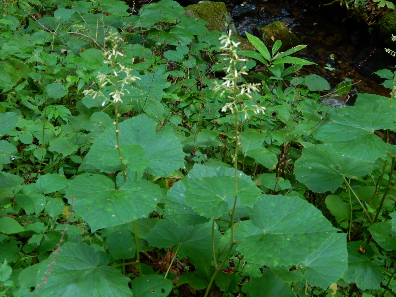 お天気下り坂です。 今日は午後から雨になります。 明日はほぼ一日雨予報。 明後日も朝のうち雨が残るようです。 涼しい朝です。 さて、似ている植物比較。 今日はちょっと地味な植物です。 モミジガサとタマブキ。 モミジガサは春の山菜として人気があります。 山菜としてはシドキと呼ばれることが多いようです。 花の時期は夏で、 山道などの暗い所で地味な花を咲かせます。 塩原ではあちこちで見かけるのですが、 同じような花を咲かせる植物が他にもいくつか。 最も似ているものに、 モミジガサよりもさらに葉が切れ込んでいる ヤブレガサがありますが、 葉の切れ込みがなく丸っこいものも。 葉に切れ込みがあるのが大体キク科ヤブレガサ属、 切れ込みがないのがキク科コウモリソウ属。 コウモリソウ属のカニコウモリも時々見かます。 ところが、よく見るとカニコウモリとも ちょっと違う葉の植物があることに気づきました。 カニコウモリより葉の周りがギザギザしてない・・・ 調べてみたらタマブキという別の種類かも。 やはりコウモリソウ属の植物です。 もし違っていたらすみません。 もう少し季節が進むと 葉の付け根にむかごができることで判別できそう。 いずれも花はそっくり。 ミゾソバとアキノウナギツカミのように、 葉の形などで見分けるしかなさそうです。 前半がモミジガサ、 後半がタマブキ(だと思う)です。 ヤブレガサやカニコウモリも 一緒に載せたかったところですが、 今年、塩原ではまだ見かけていなくて。 もし見つけたら、追加したいと思います。 モミジガサ。葉の形がモミジによく似ています。 混在。![]() ![]() タマブキだけ。![]() ![]() ![]() ![]() ![]() ![]() ![]() 2025年9月 9日 09:21
