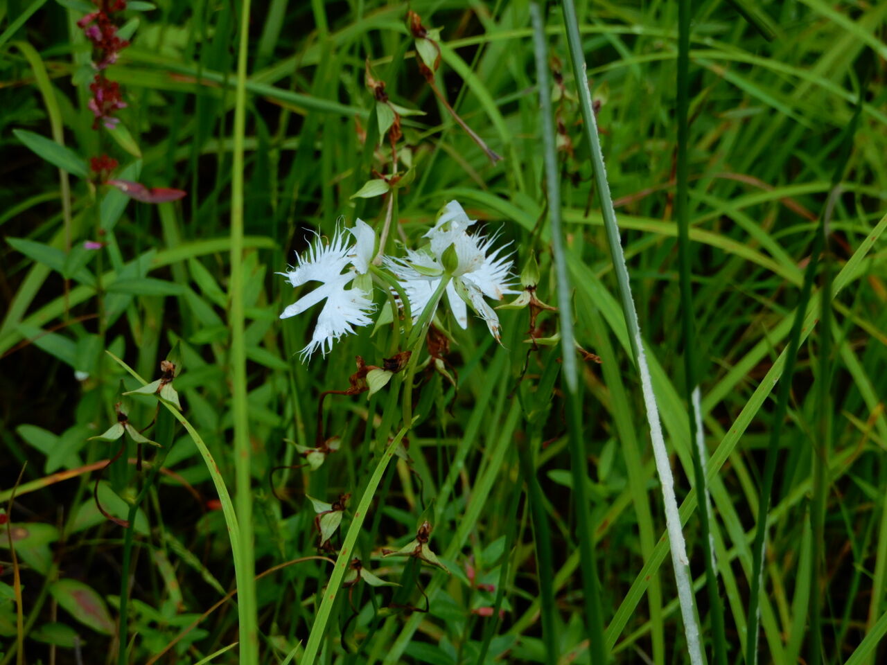 昨日の夜は半袖だと寒いくらいでしたが、 今朝もとても涼しい朝になっています。 さて、昨日の続きのヨシ沼。 サワギキョウとか、 リンドウとかも減ってしまい、花は少なめ。 ところが、ところが。 感動的な花との出会いがいくつも待っていたのです。 まずは、モウセンゴケの花をやっと見ることができました。 モウセンゴケ自体は何度も見ています。 ところが、今までタイミングが悪かったのか、 花を見たことがなかったのです。 小さな小さな花。 食虫植物がこんなに小さくて可愛い花を咲かせるのです。 目を凝らしてみると、あちこちに咲いていました。 すぐ近くに、別の小さな白い花が。 こちらも初見で、最初全く見当つかなかったものの、 ふとした偶然でヒメナミキという花とわかりました。 そしてこちらで初めて見る二つの野生ランに遭遇。 間違っていなければ、 トンボソウと、オオヤマサギソウです。 トンボソウは他の場所で見たことはありますが、 塩原では初見。 オオヤマサギソウは全くの初見でした。 いずれもひっそりと咲いてました。 普通に歩いていたら、見逃していたと思います。 ミヤマウズラも去年より数はかなり少なかったけれど、 花茎が何か所かに。 もうすぐ花も見られるかな。 2025年8月 8日 08:53
