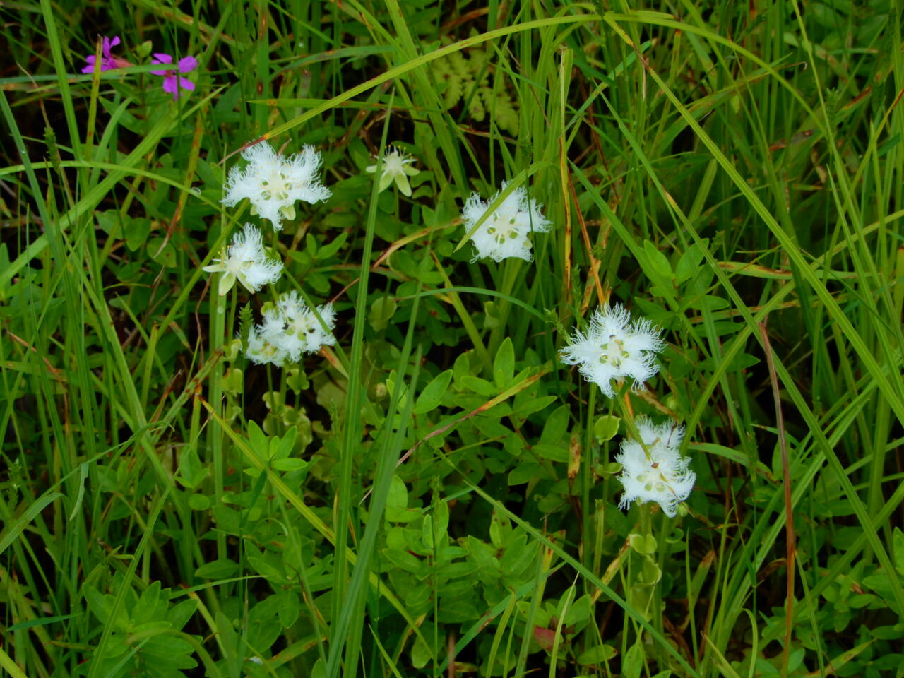 朝のうち、雨が降りますが、その後はくもり。 しばらくくもり予報で、火曜日だけ晴れマーク。 洗濯物は一気に火曜日にするのが良さそうです。 さて、塩原大沼やヨシ沼のアケボノソウが咲いてきました。 私が知るかぎり、 塩原でも大沼、ヨシ沼でしか見かけないので、 毎年花を見に行くのを楽しみにしています。 リンドウ科センブリ属の植物。 花の付き方がセンブリにそっくり。 真っ白な花に緑と紺色の斑点が入る、 ちょっと面白い模様の何とも爽やかな花。 この緑色の斑点は蜜が出てくる場所で、 蜜に誘われて虫たちもやってきます。 アップにしてよく見ると蜜も見えています。 きれいな5弁の花が星を連想させます。 中には4弁の花もありますので、探してみて下さい。 最後の写真の中にも二つありますよ。 残念ながら、大沼はかなり減ってきて、 ヨシ沼のほうが見つけやすいかと思います。 いつまでも大切にしたい花です。 初秋の大沼とアケボノソウ。 ![]() ![]() ![]() ![]() ![]() ![]() ![]() ![]() ![]() ![]() ![]() ここからはヨシ沼で。 ![]() ![]() ![]() ![]() ![]() 2025年9月13日 09:19